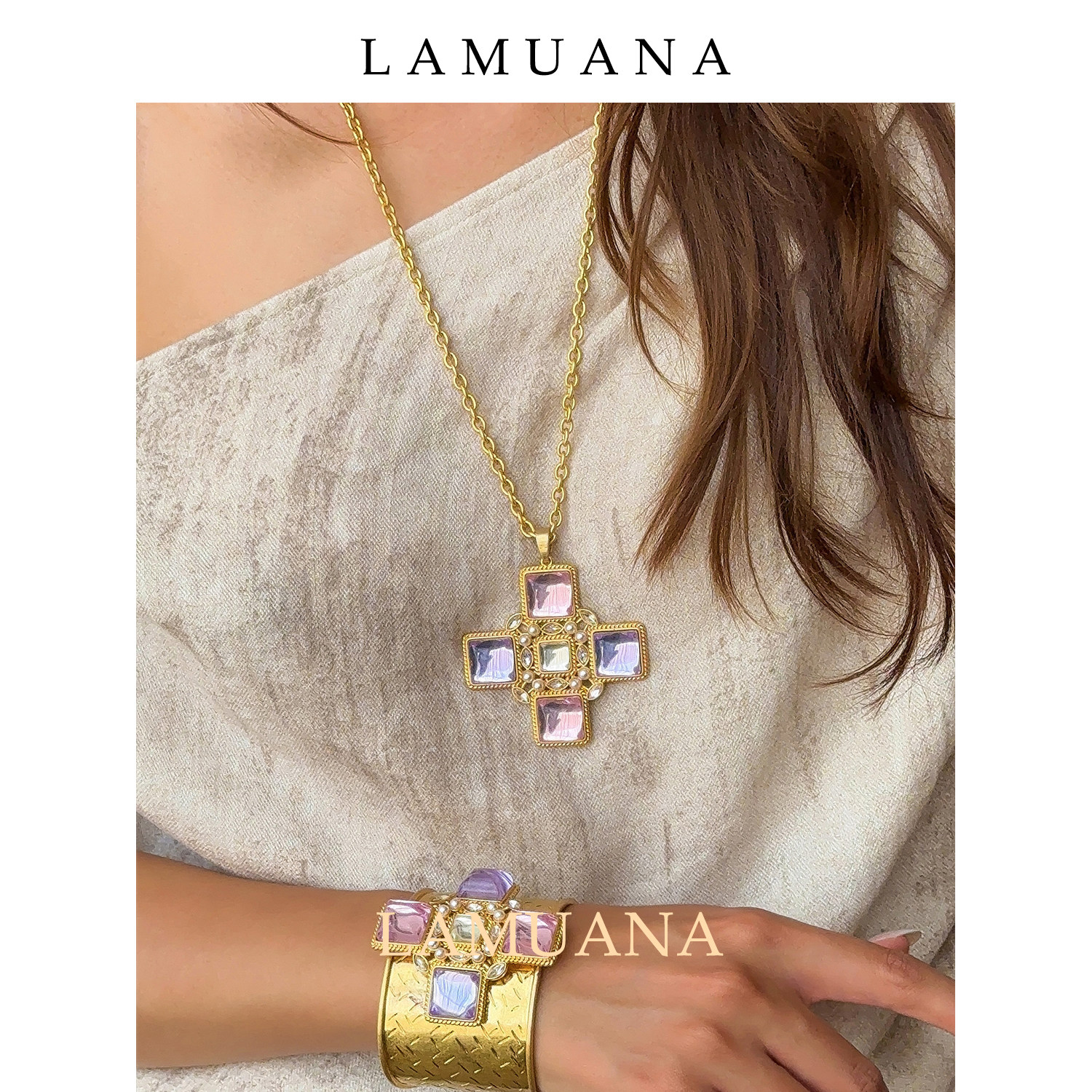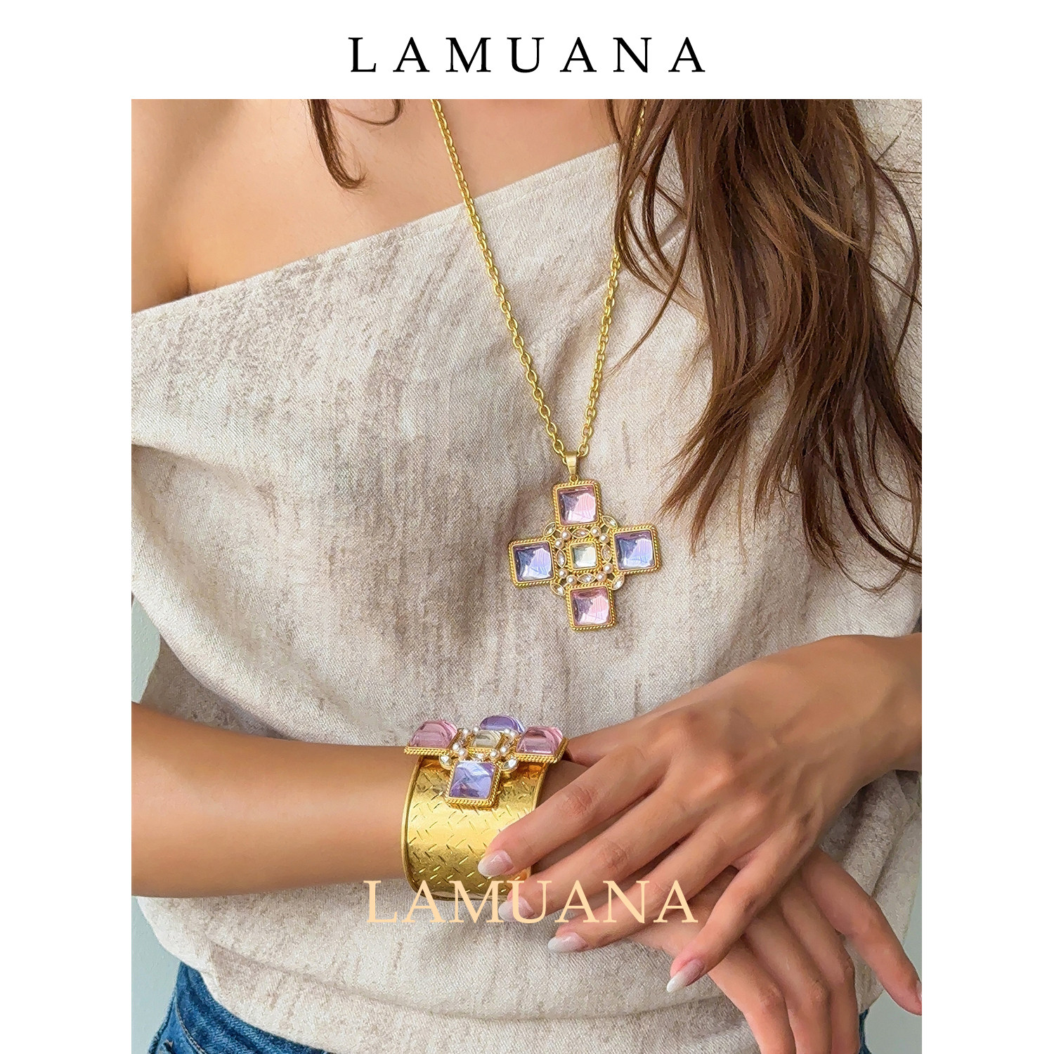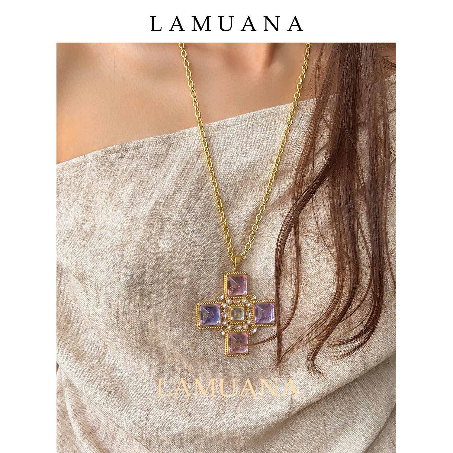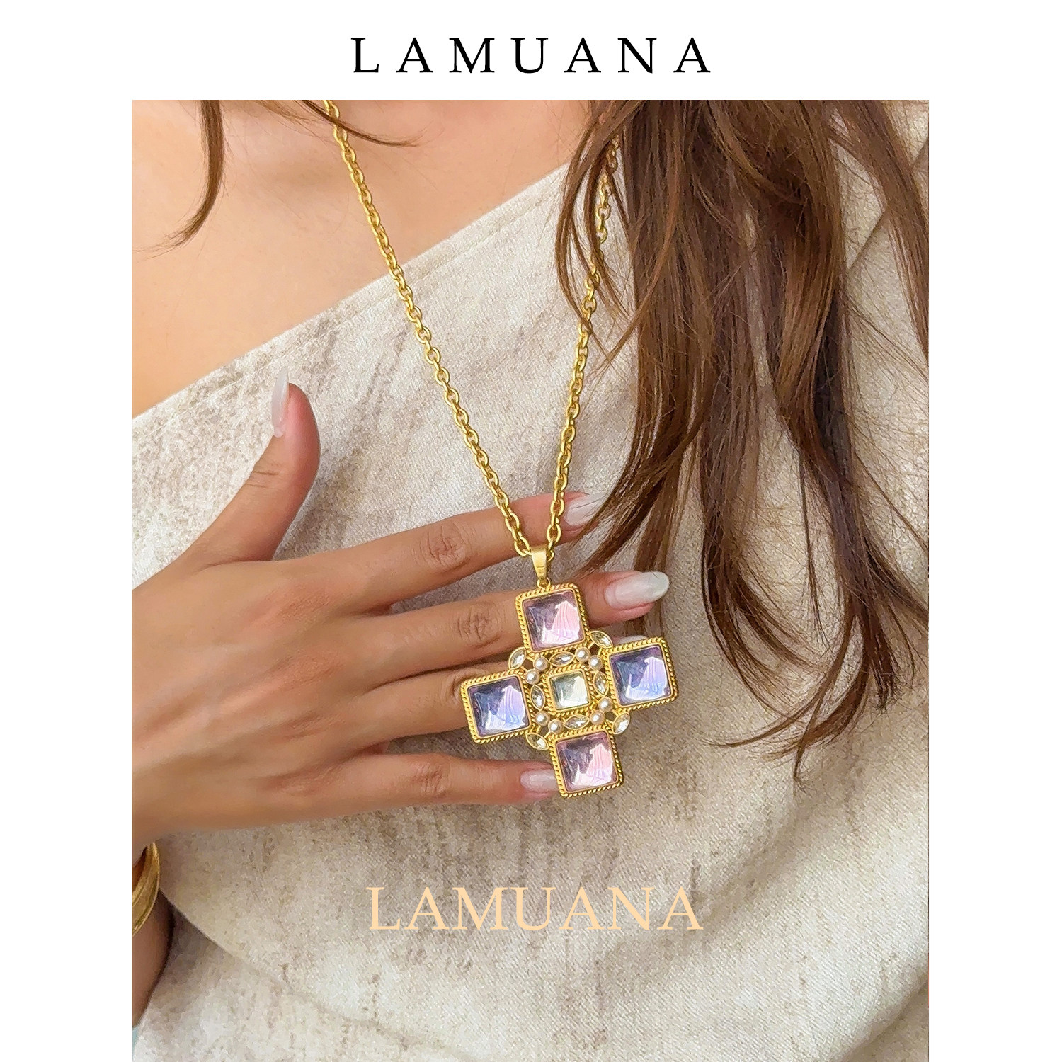 LAMUANA粉蓝糖塔十字项链长款颈链毛衣链复古小众vintage风85766