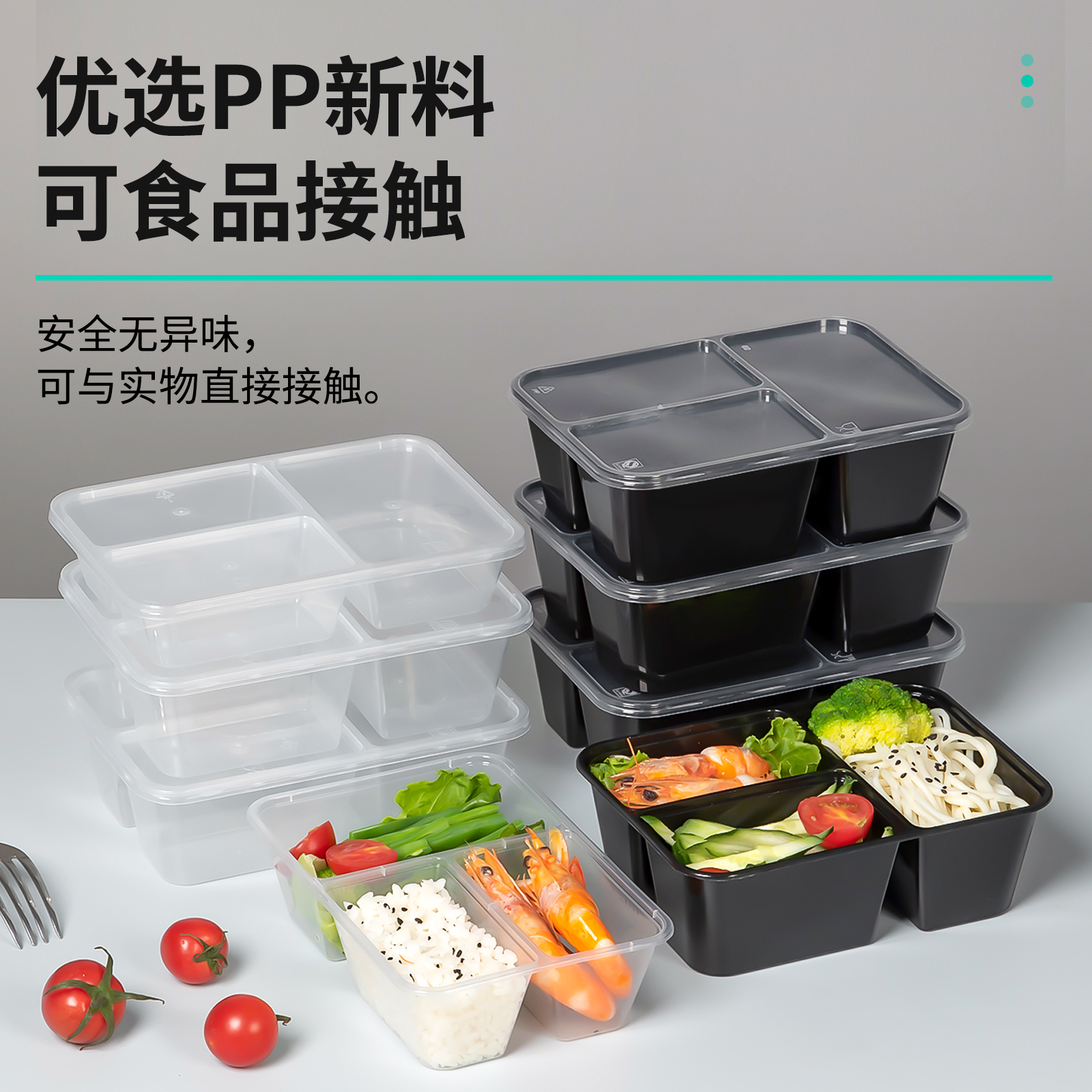 500/750/1000ml一次性长方形三格餐盒外卖打包盒透明分隔多格快餐