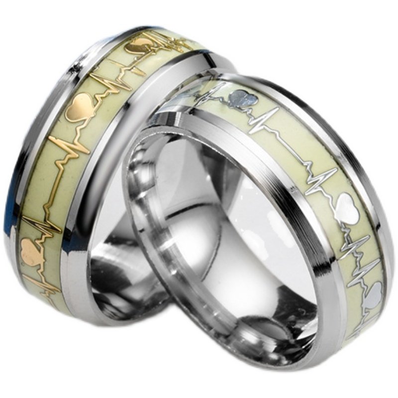 时尚韩版不锈钢夜光发光戒指男心电图爱心钛钢首饰潮女不褪色饰品
