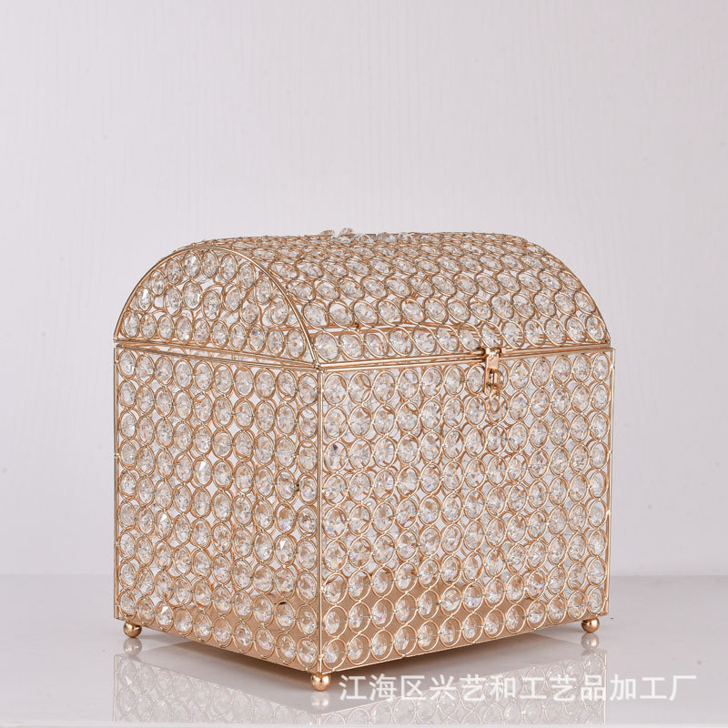中式五金铁艺百宝箱电镀金色透明水晶摆件家居饰品简约玄关客厅