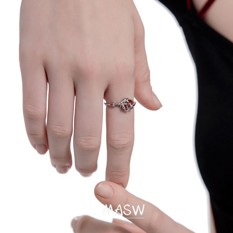 MASW麻秀原创设计荆棘玫瑰个性食指戒甜酷辣妹蔷薇花朵指环M1405