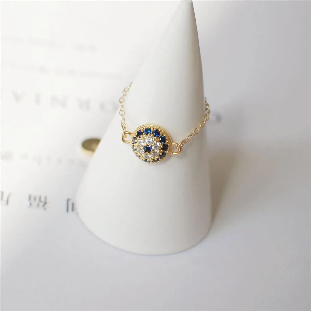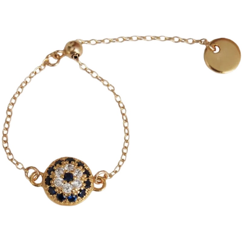 《恶魔之眼II》s925银镶钻链调节戒指浪漫土耳其之眼个性简约女戒