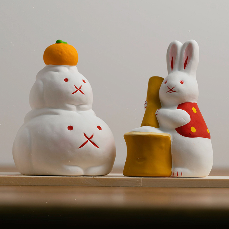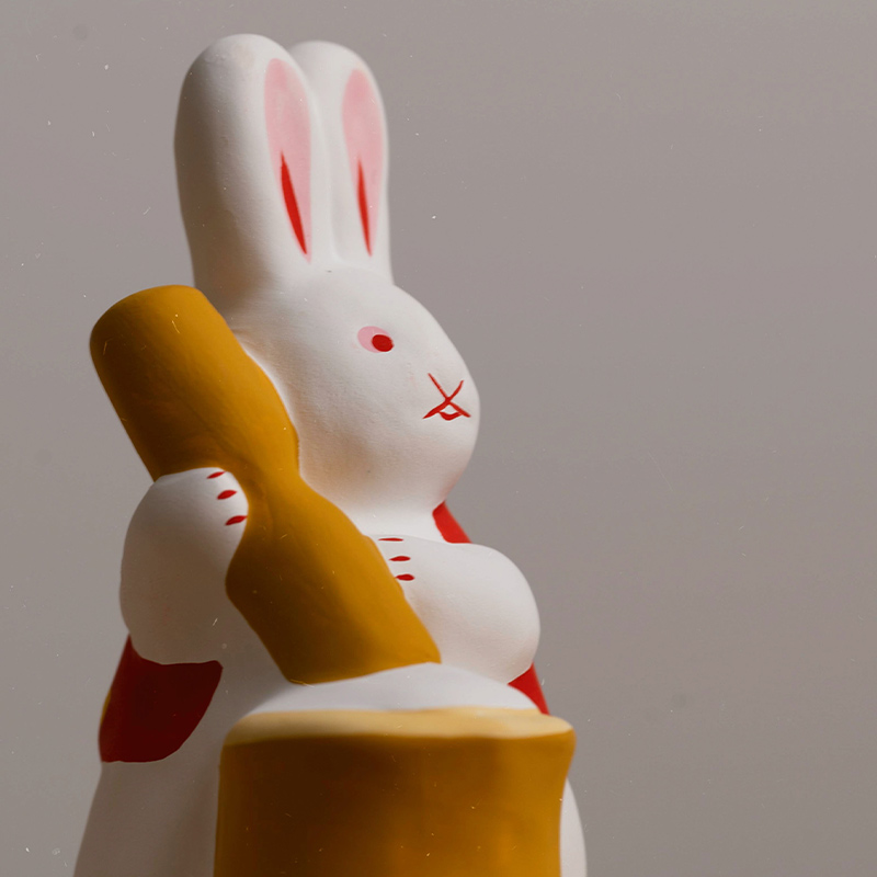 西米集市日本乡土玩具工房动物潮玩生肖兔可爱摆件手工陶桌面车载