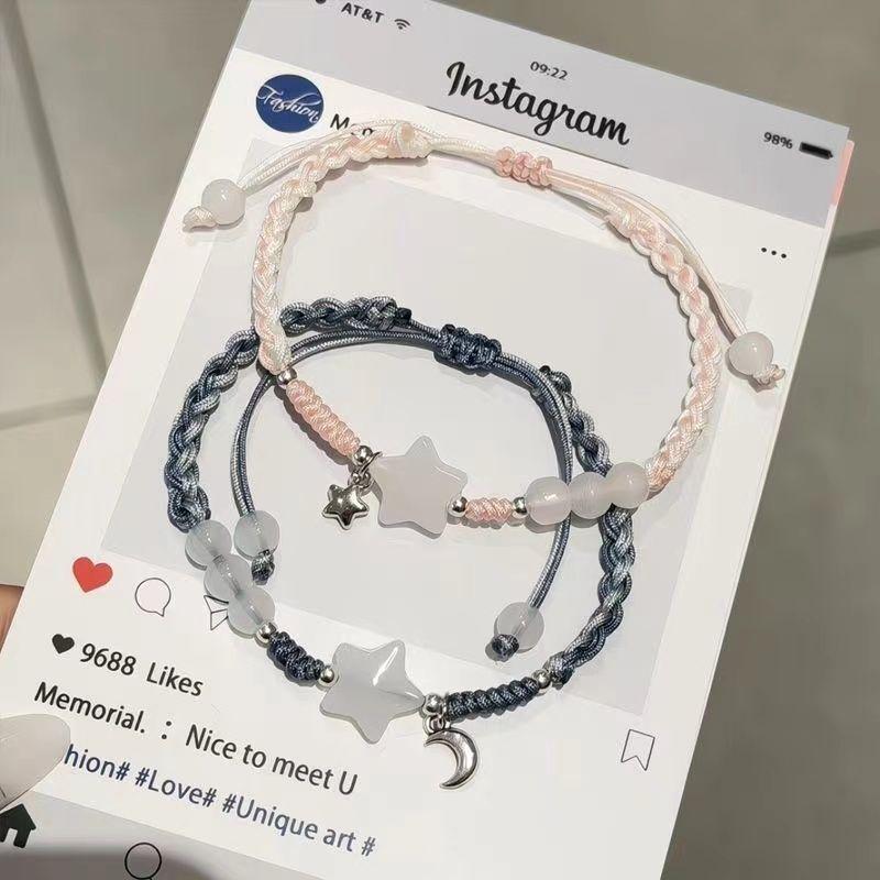 星星月亮串珠手链简约百搭小众情侣闺蜜手工编织手绳送女朋友礼物