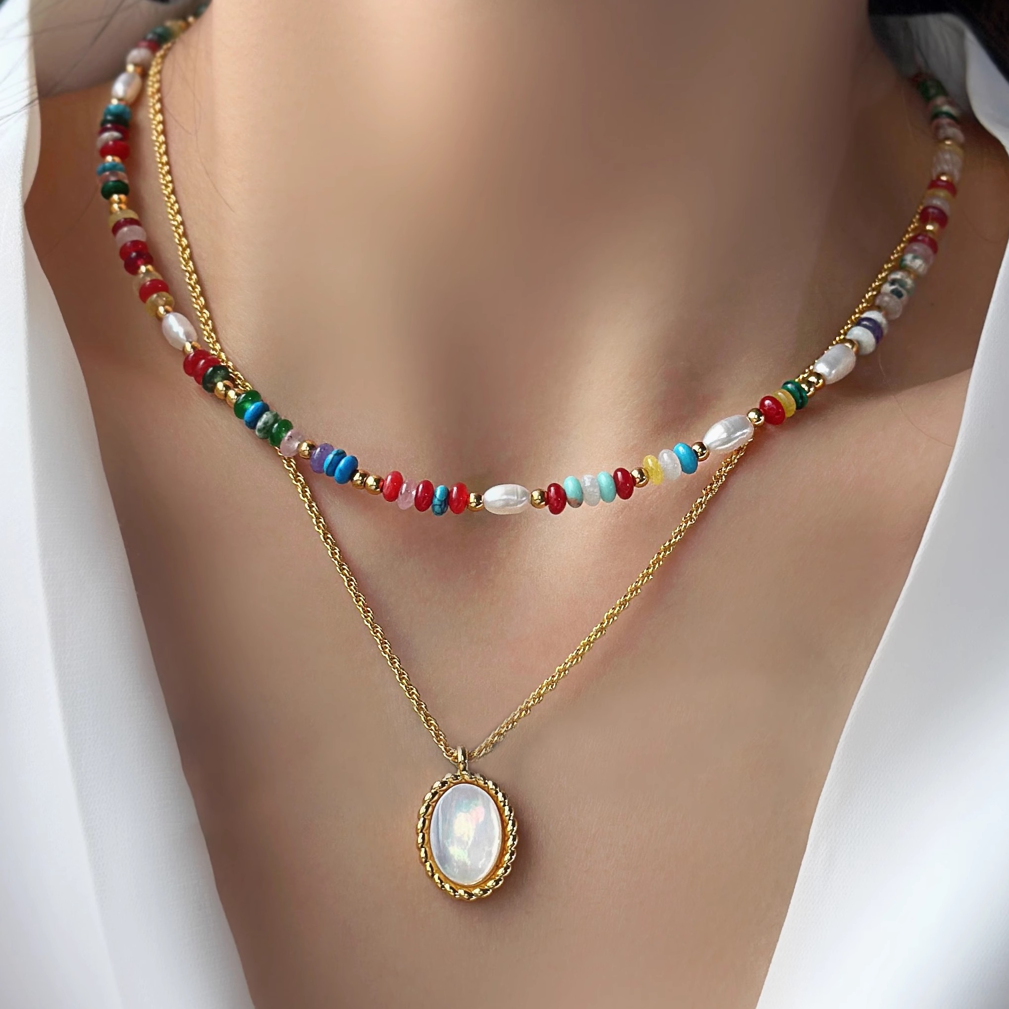 天然石彩色多巴胺串珠珍珠项链女轻奢小众2025新款叠戴锁骨链颈链