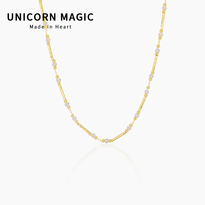 黄铜镀金金色花管拼接白水晶串珠小众项链法式复古锁骨链女高级感