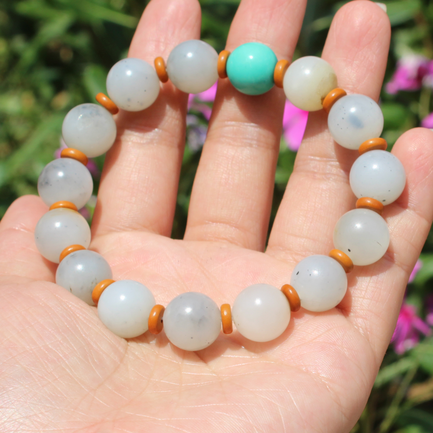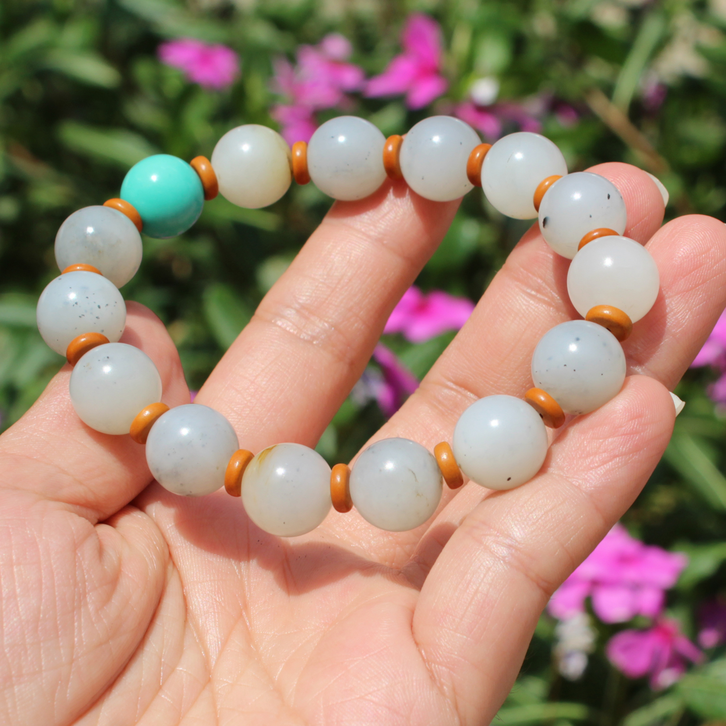 亏麻了方言和田玉新疆细腻细腻白玉点墨青花籽料卡12mm圆珠手链A6