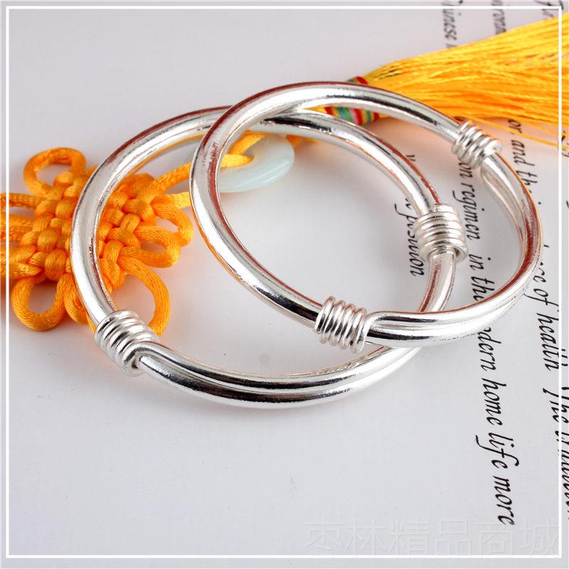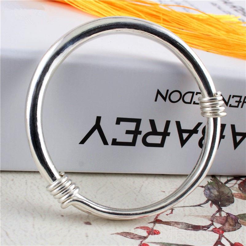 正品纯手工可定制999纯银 心伸 缩推粗细可调拉节银实手镯 光面银