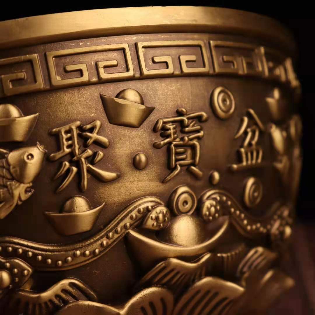 聚宝盆摆件纯铜实心五福纳财盆铜碗家用客厅门店开业礼品大号铜盆