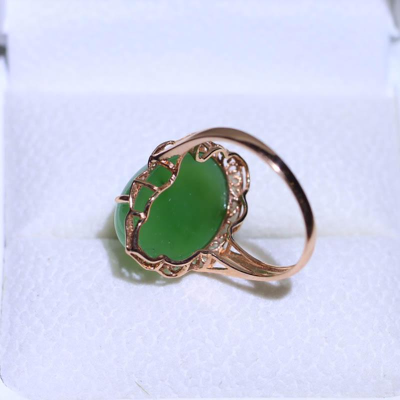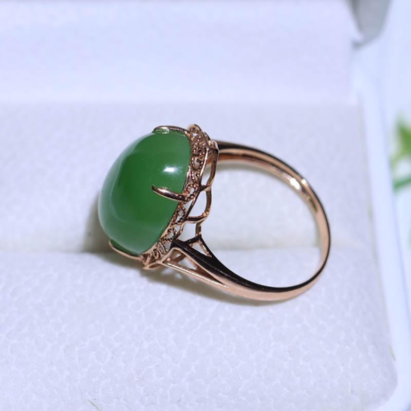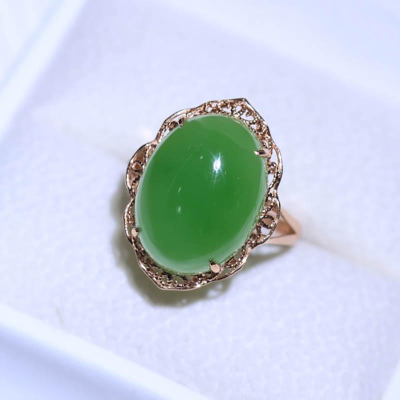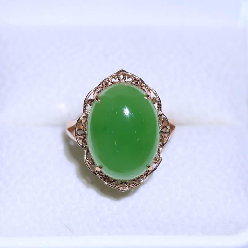 年货节礼物天然和田玉戒指女a货菠菜绿碧玉蛋面镶18k金指环送妈妈