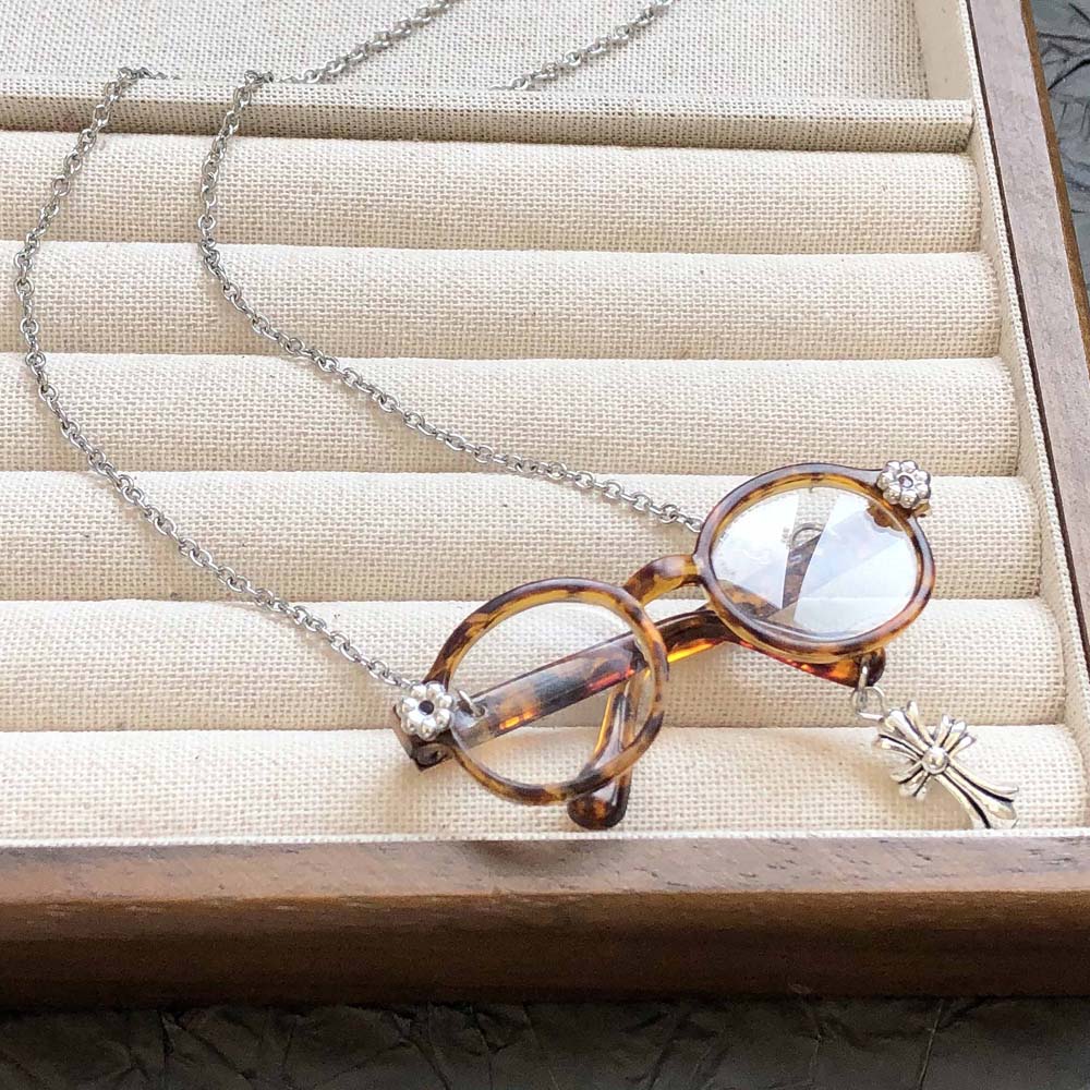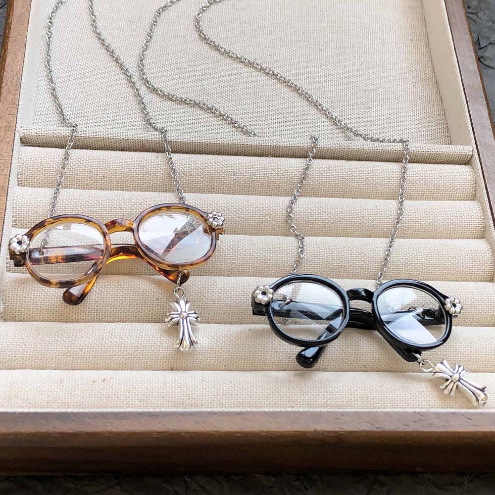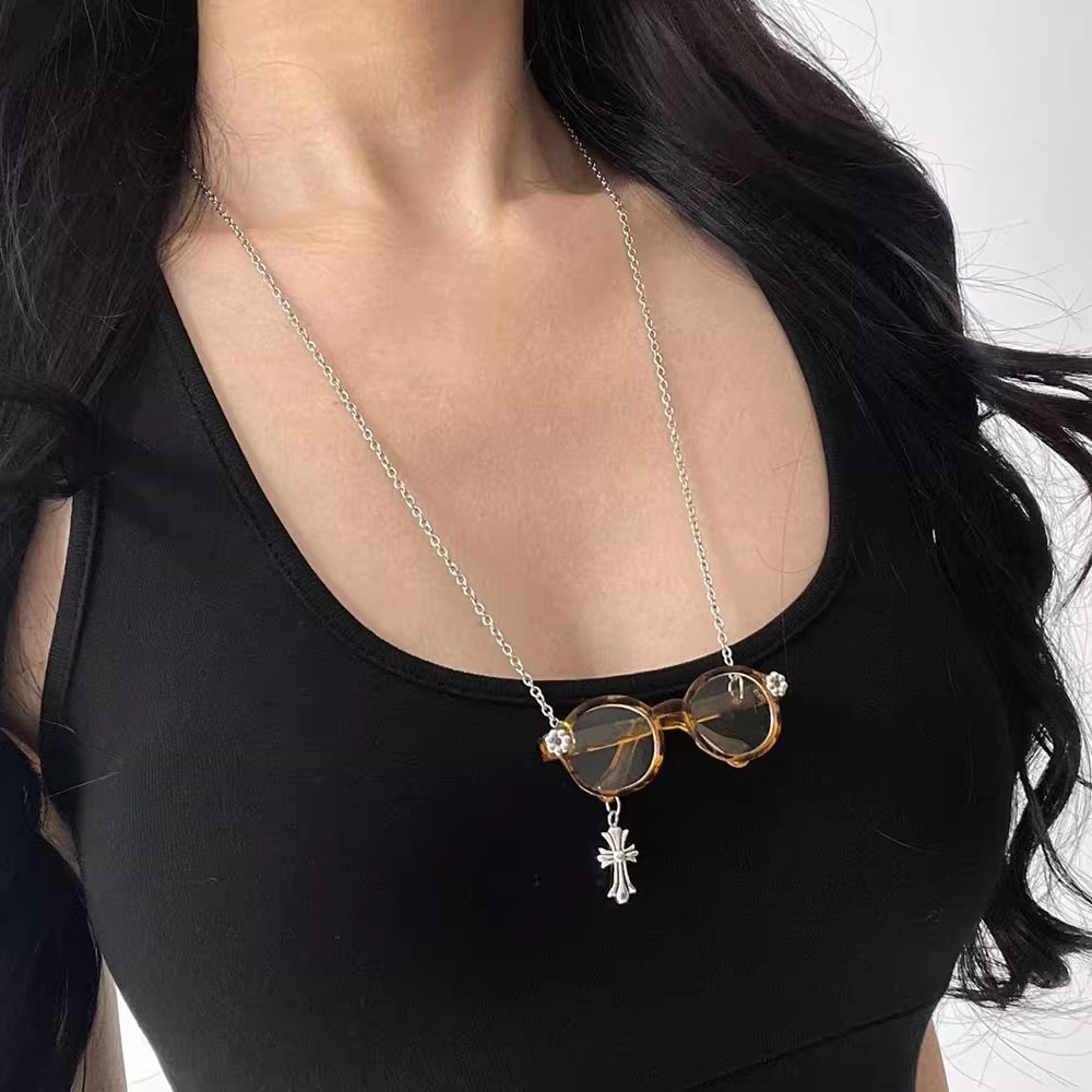 创意复古透明眼睛十字架项链女长款流苏搞怪独特锁骨链卫衣毛衣链