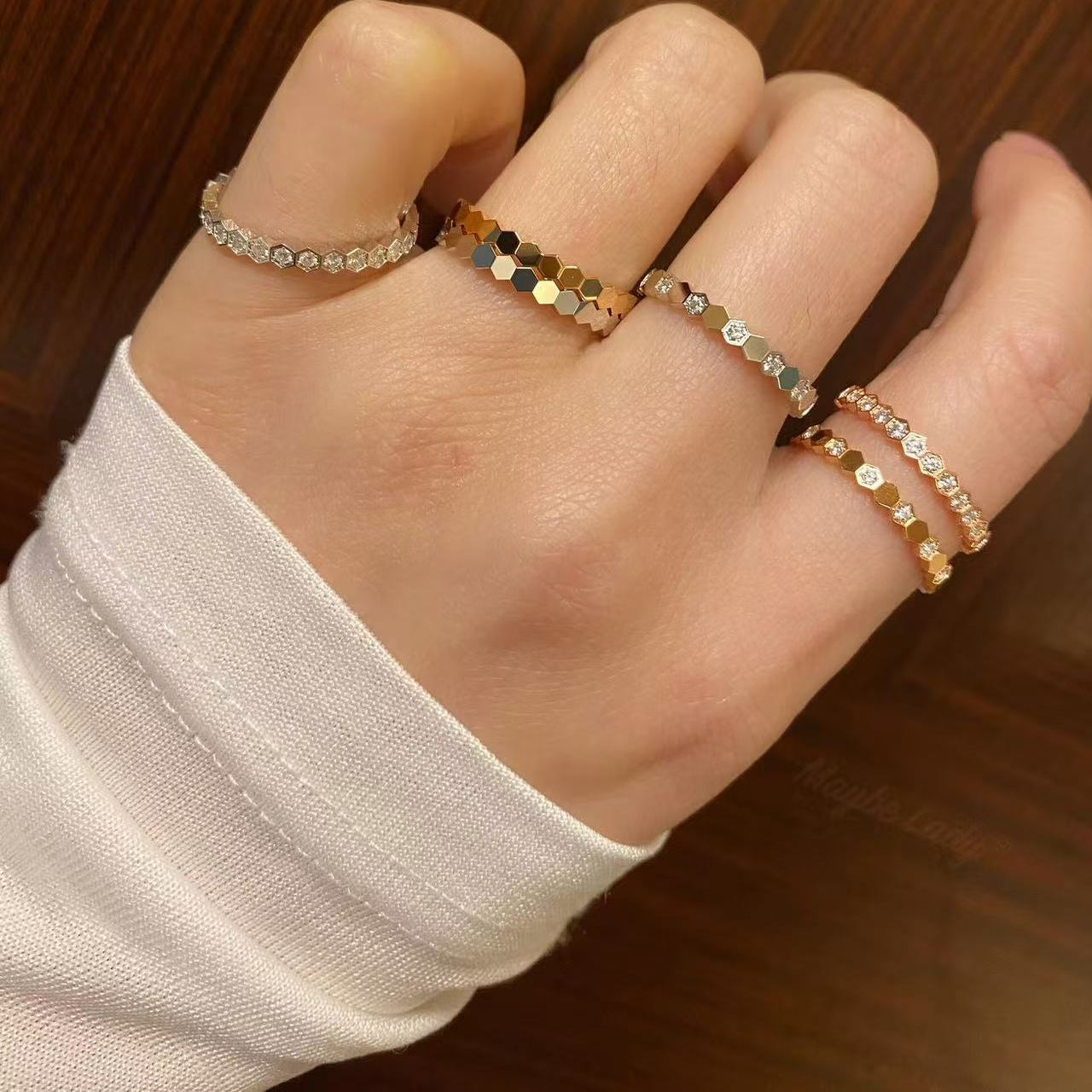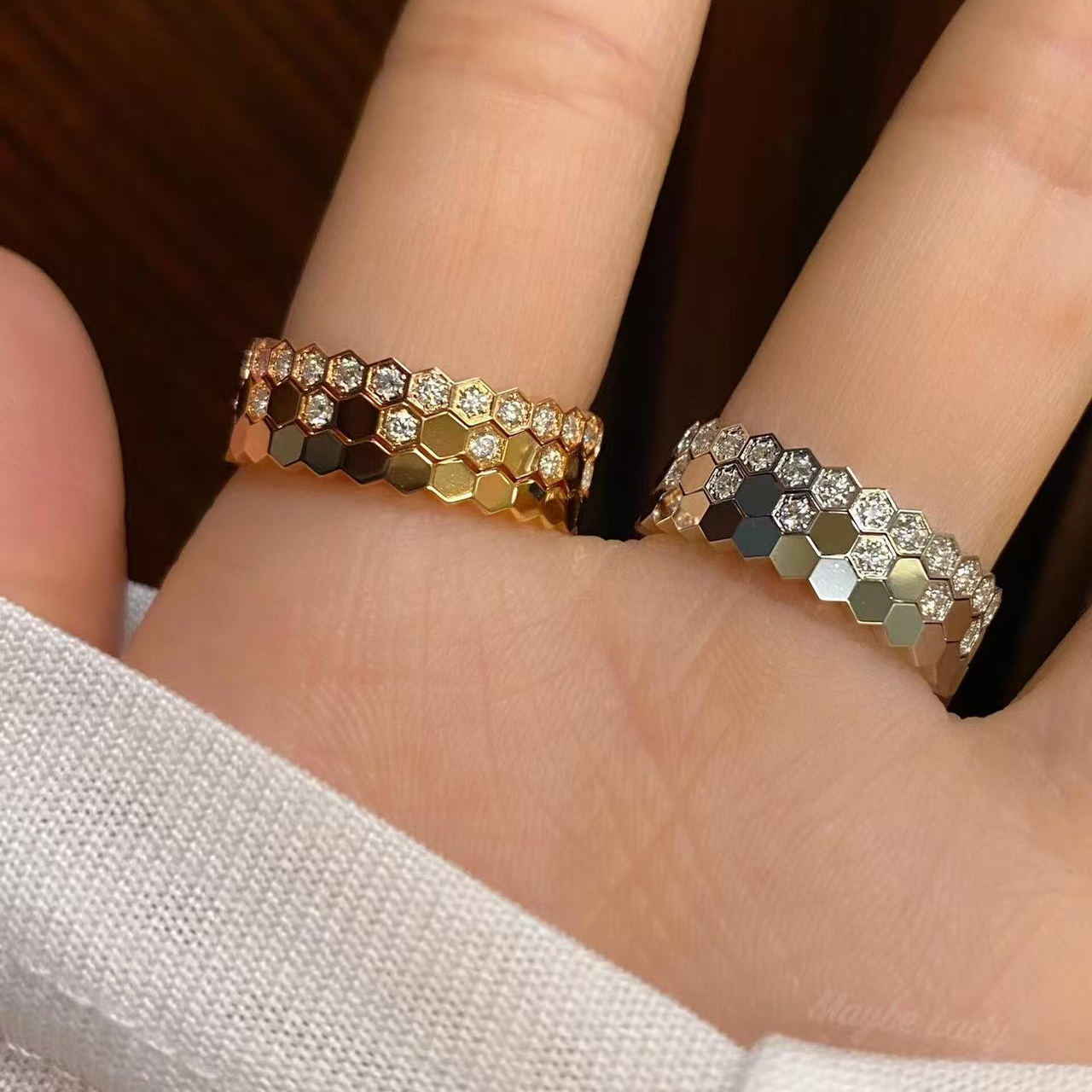 蜂巢戒指女小众轻奢高级感素圈18k玫瑰金蜂窝排钻菱格叠戴食指环