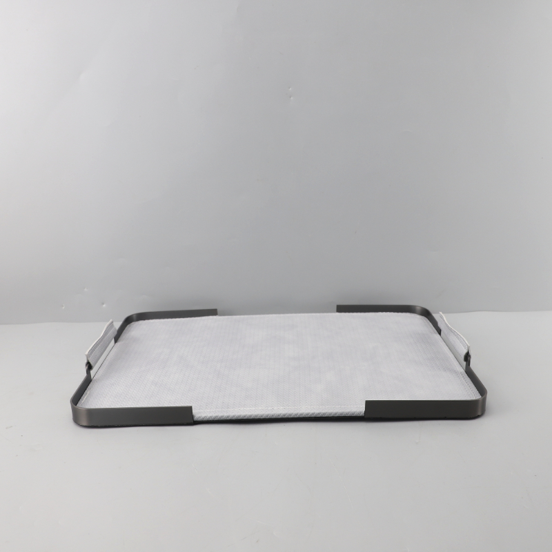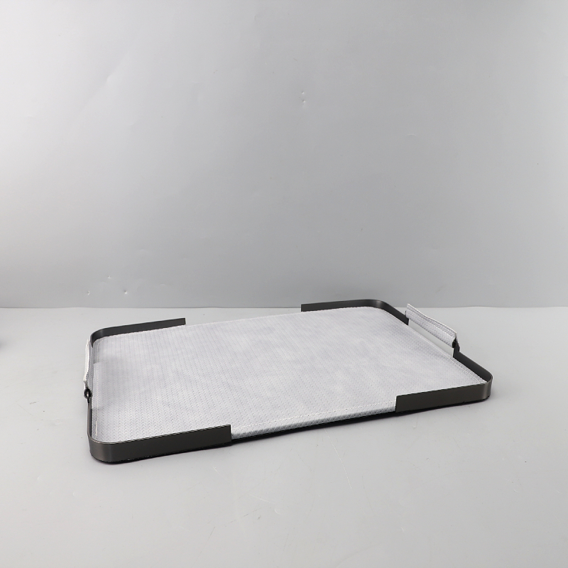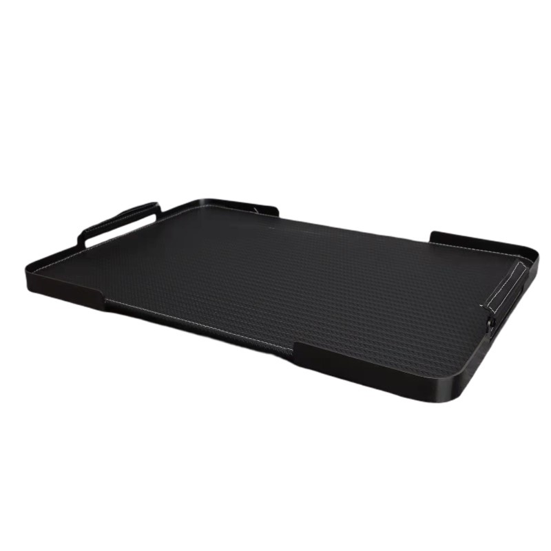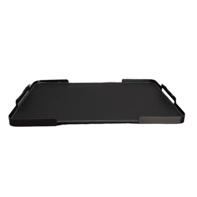 简约现代编织皮革金属黑钛托盘摆件样板间家居客厅桌面收纳装饰品