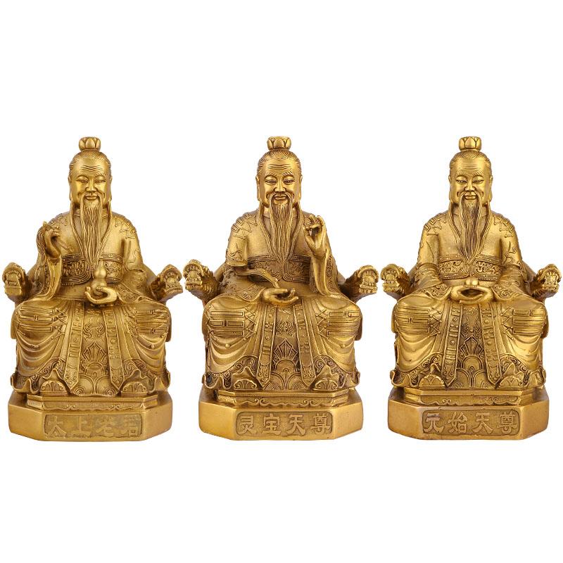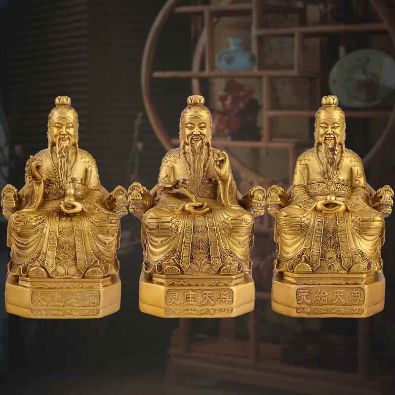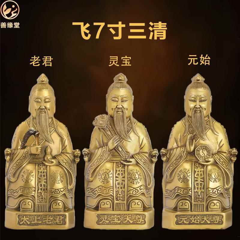 精品三清铜像一套黄铜龙椅灵宝元始祥云太上老君居家桌面摆件大号