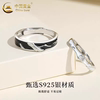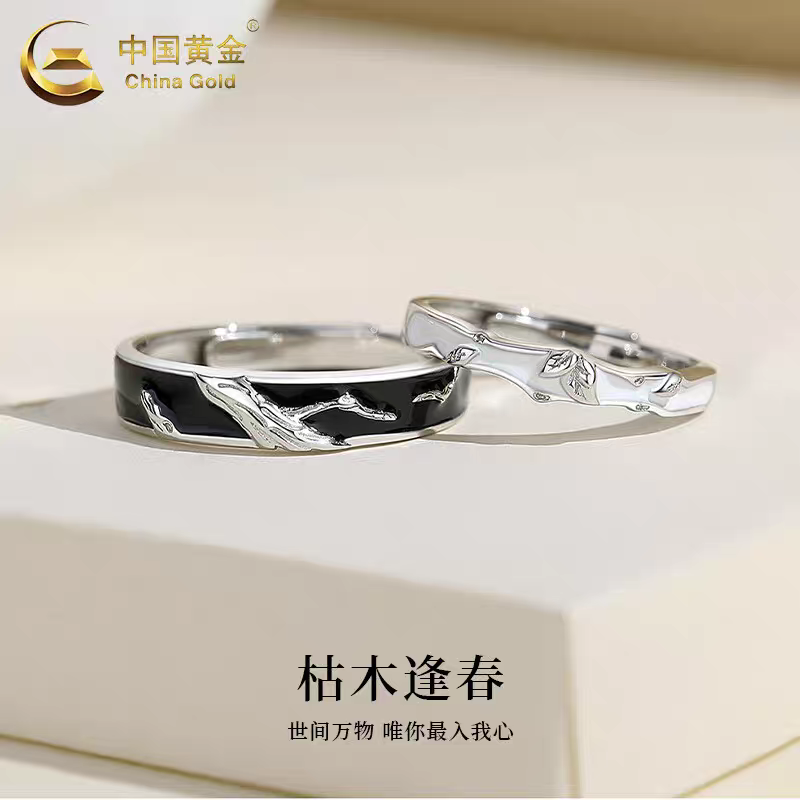 百利金枯木逢春轻奢简约高级感开口情侣纯银一对戒指男女不掉色