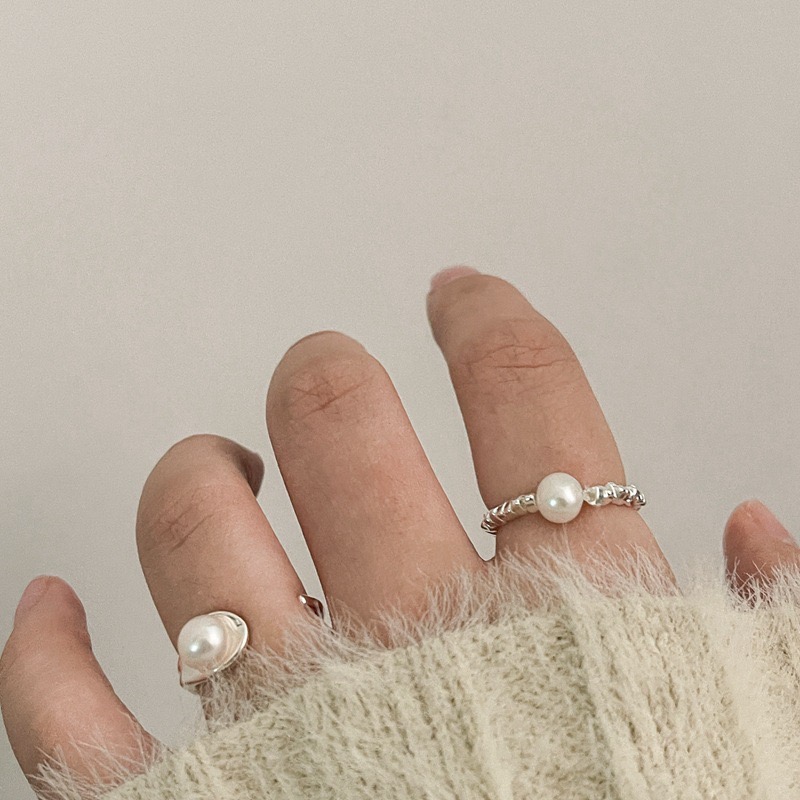 BKP曼谷公园「气质碎银」韩国小众设计珍珠碎银戒指百搭通勤简约