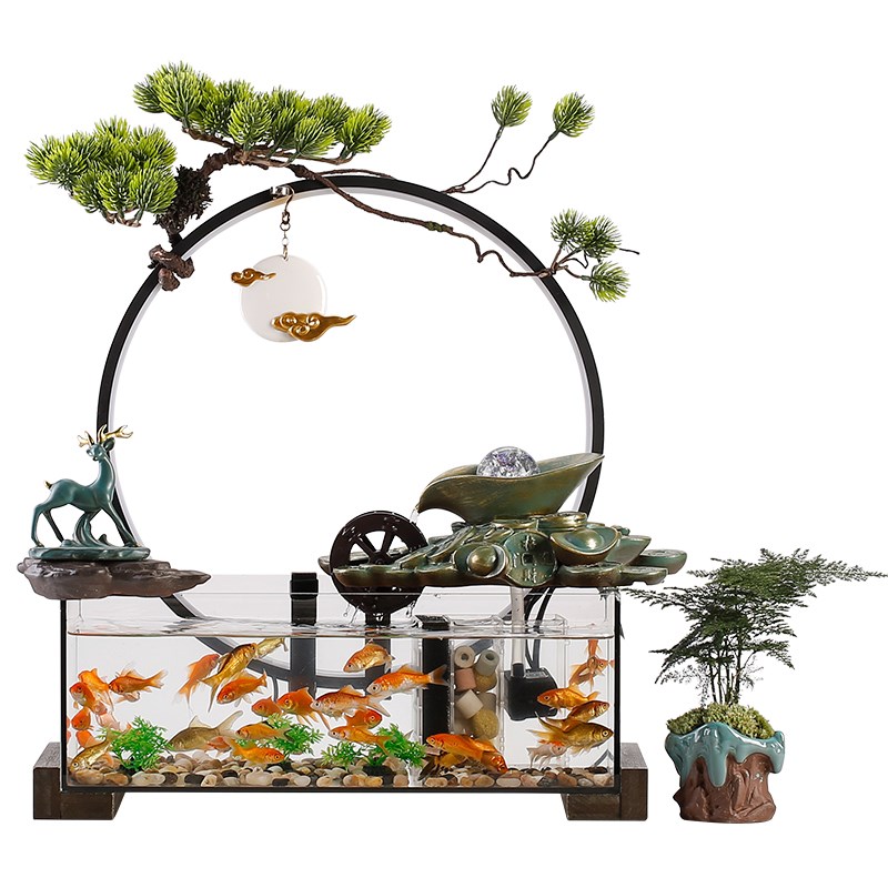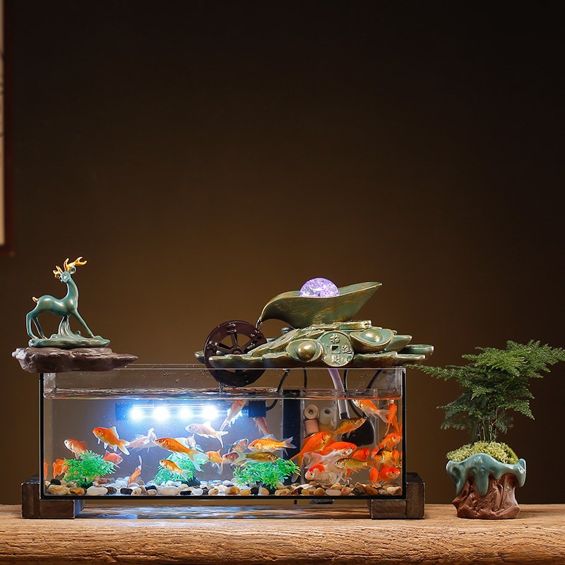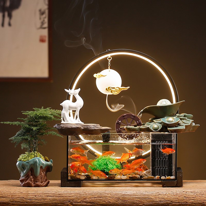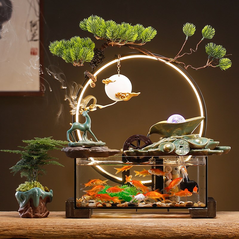 创意流水喷泉招财鱼缸摆件家用客厅桌面装饰品造S景循环水开业礼