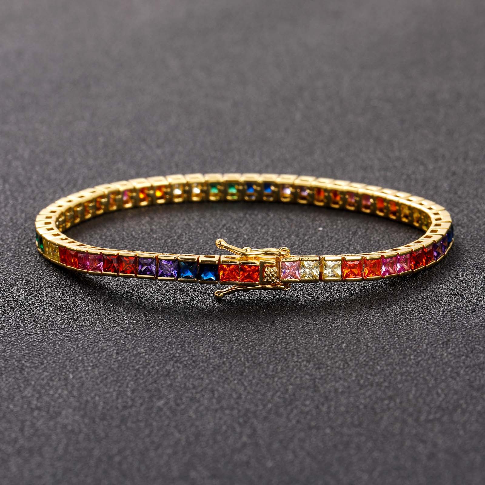 ICE BLING 4*4mm正方形彩色钻锆石网球手链 嘻哈男士小众手饰品