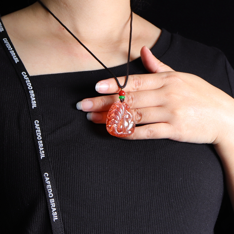 天然金太阳吊坠日光石金草莓雕刻挂坠男女款挂件饰品礼物 送证书