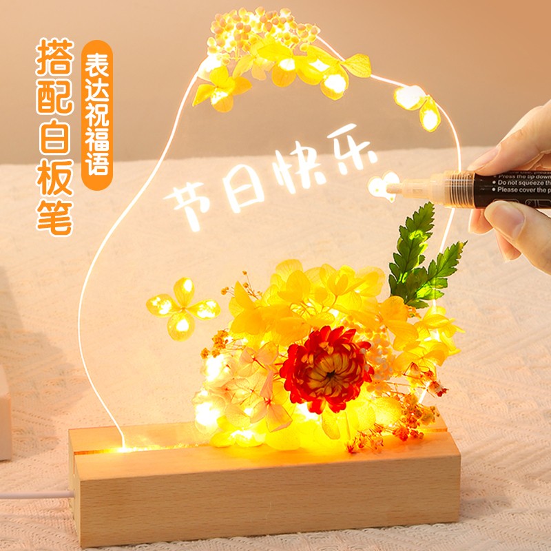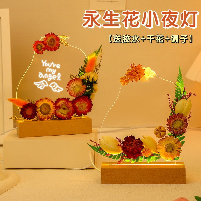中秋节郁金香小夜灯手工干花diy材料玻璃画永生花玻璃罩摆件