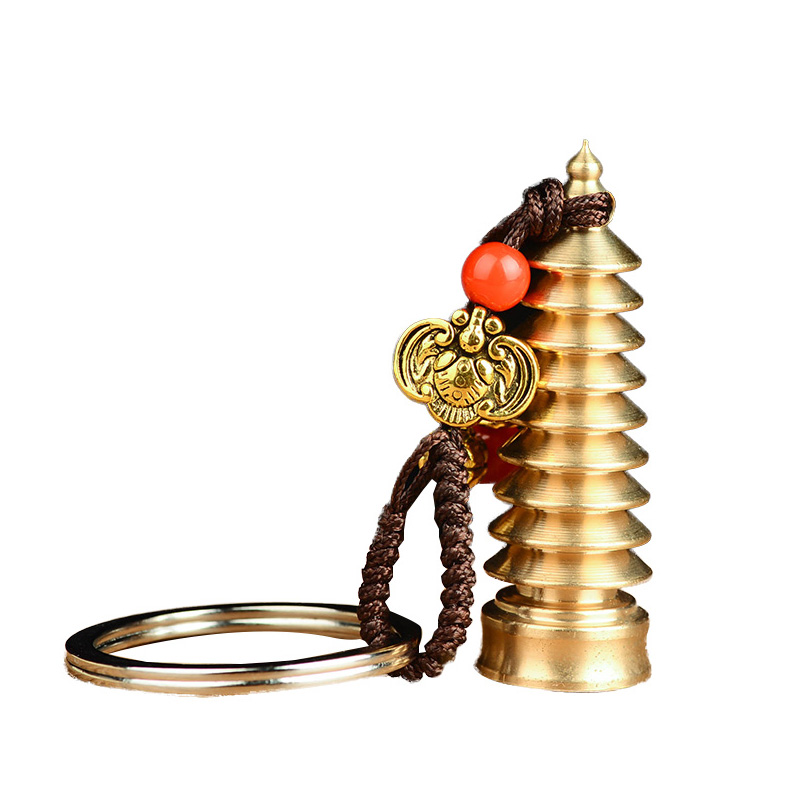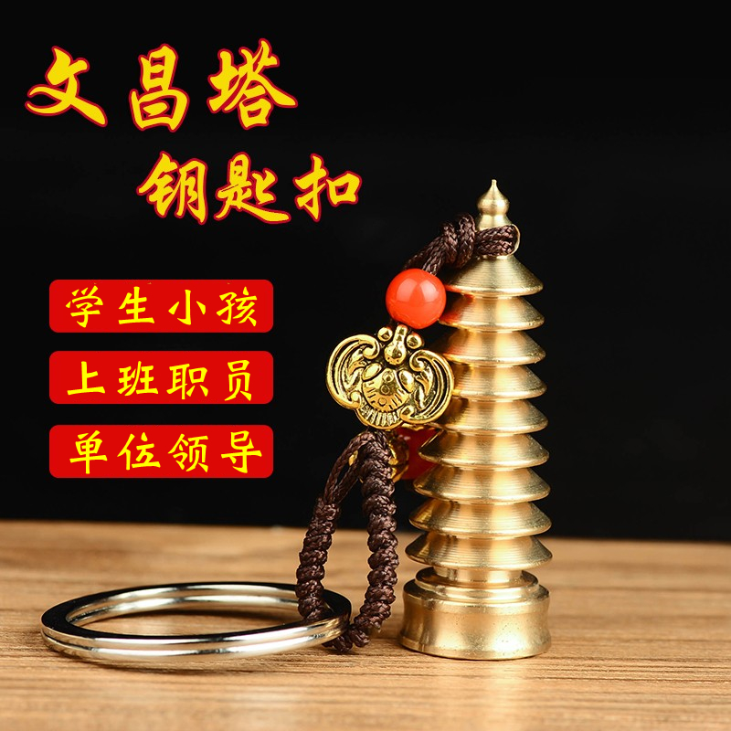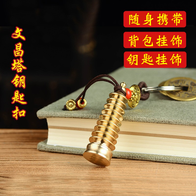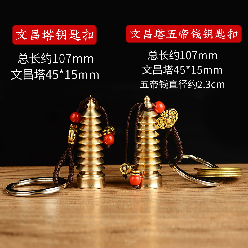 纯黄铜文昌塔五帝钱钥匙扣挂件随身携带背包饰品学生上班工作职员