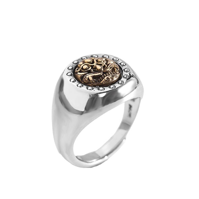 本命年文艺复古做旧指环925银精工男士瑞兽戒指个性戒子礼物