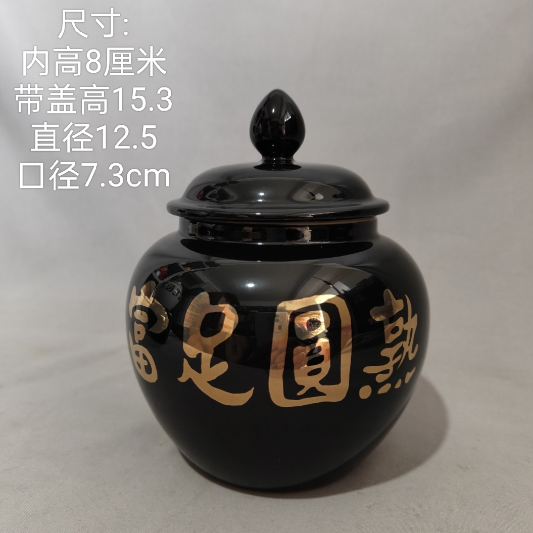 小号700ml富足圆熟白色罐咖啡色字白咖易经聚宝盆 道学陶瓷罐摆件