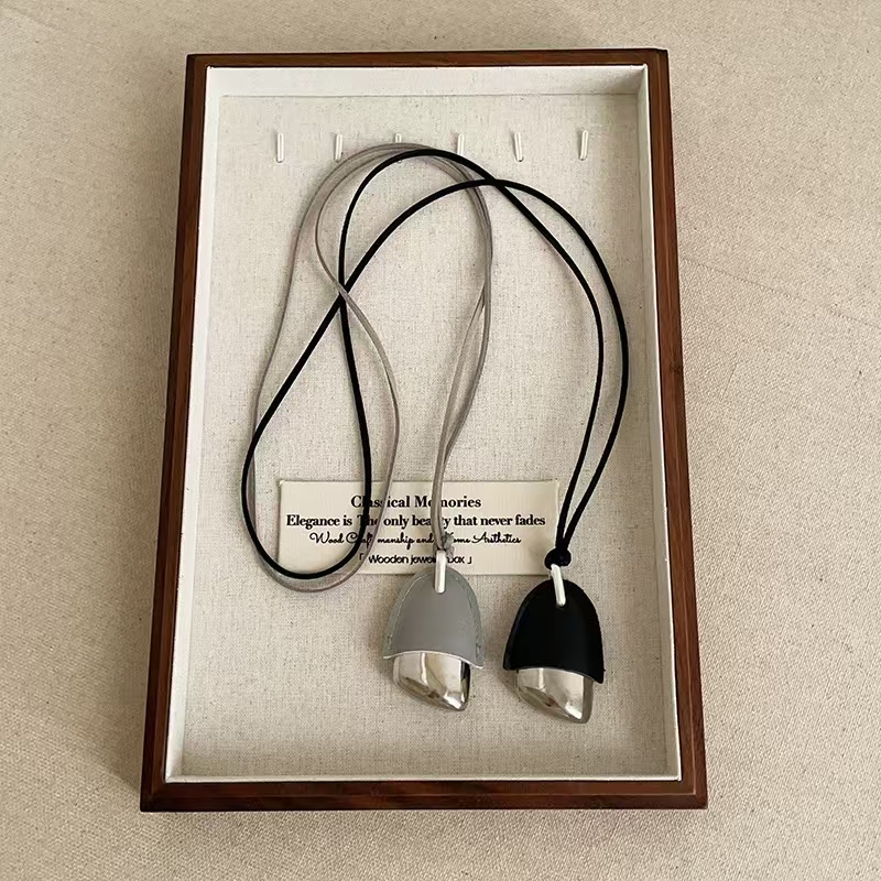 设计感皮革金属松果吊坠项链女韩国潮流ins个性时尚颈链毛衣链