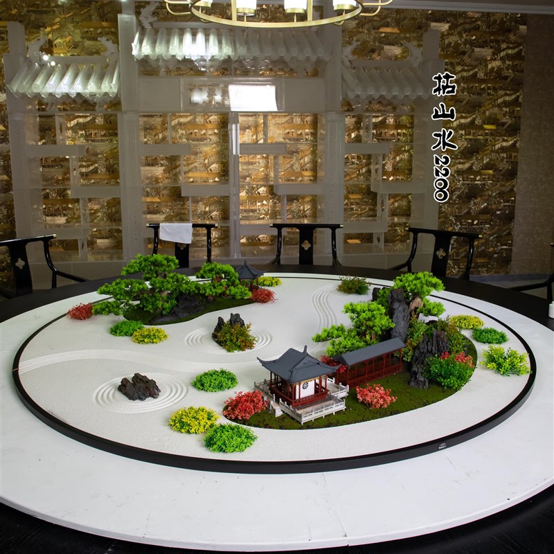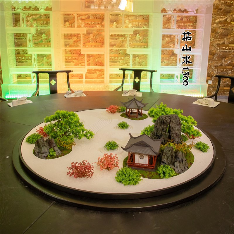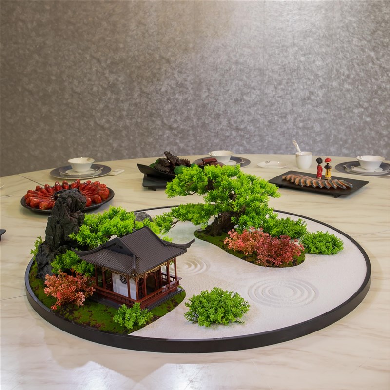 酒店餐桌大圆桌摆件创意枯山水造景桌面装饰微景观包厢Z轻奢餐桌