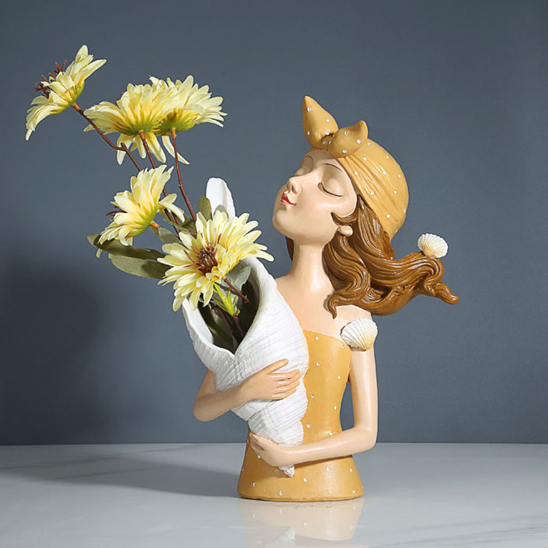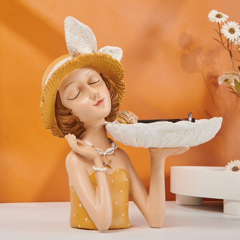 北欧轻奢海洋风贝壳女孩花插托盘摆件家居客厅门口电视柜酒柜装饰