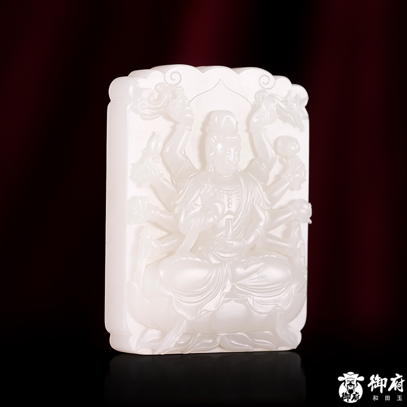 【御府】新疆和田玉羊脂白玉籽玉正品天然籽料玉石玉牌千手观音