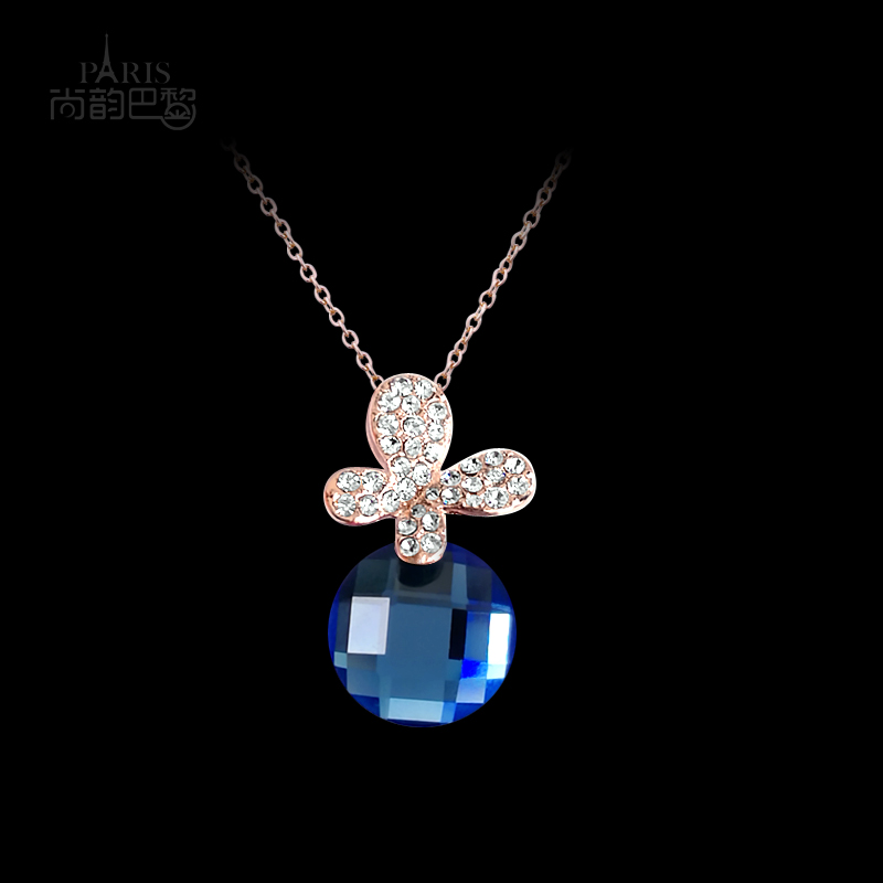 韩版蓝宝石水晶水滴项链海洋之心紫水晶吊坠锁骨链银花朵蝴蝶项链