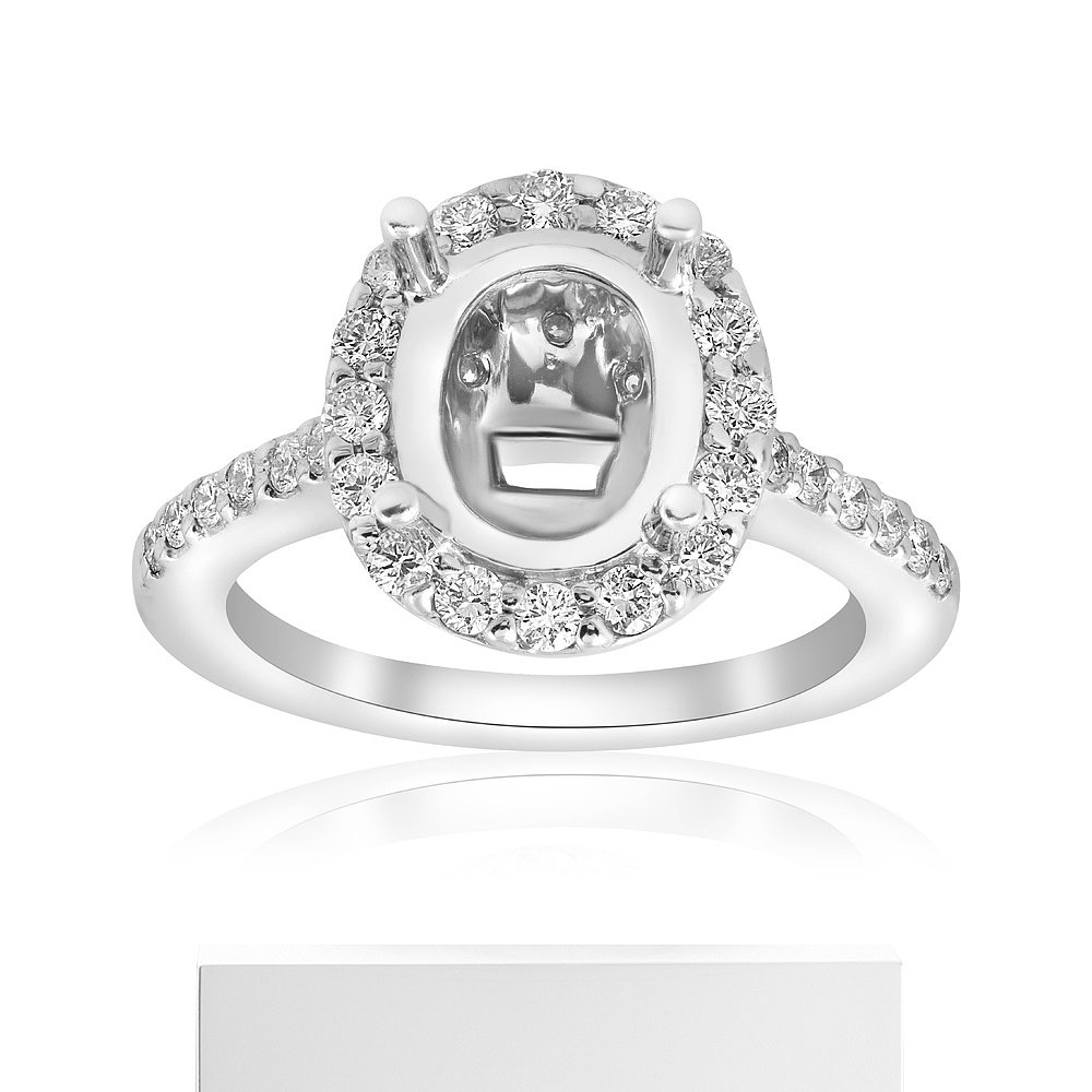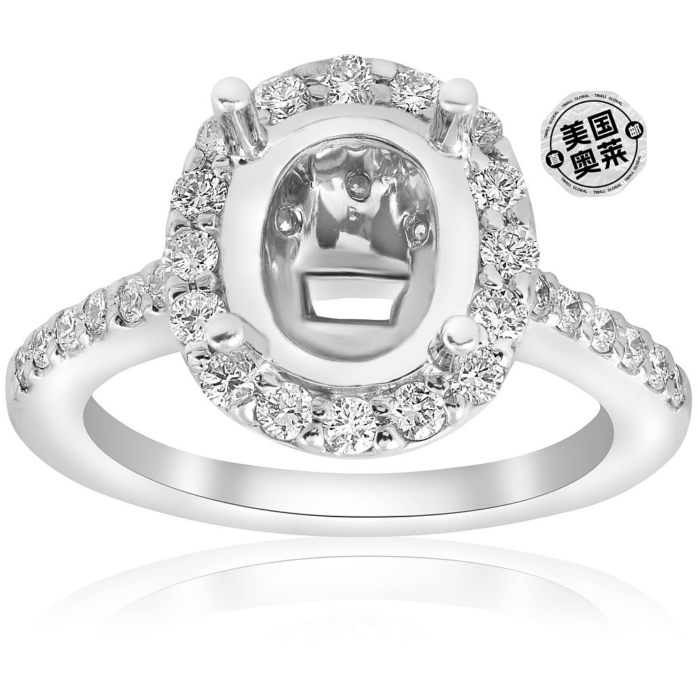 自营 pompeii33/4 克拉椭圆形钻石复古订婚戒指镶嵌半镶 14K 白金