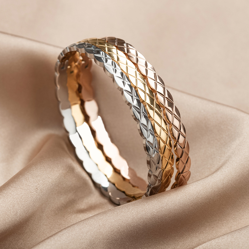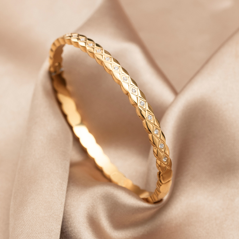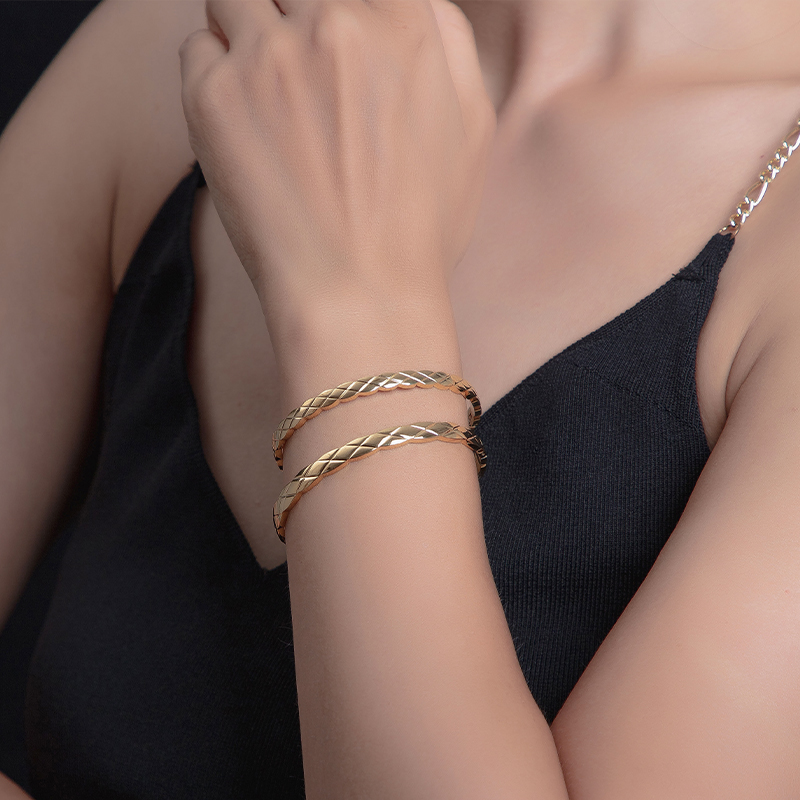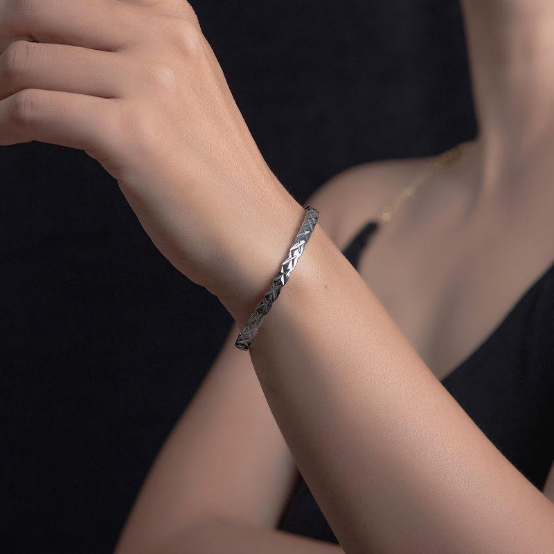 苏瑞瑞时尚细版菱形手镯椭圆开口钛钢麻花手环轻奢复古简约饰品女