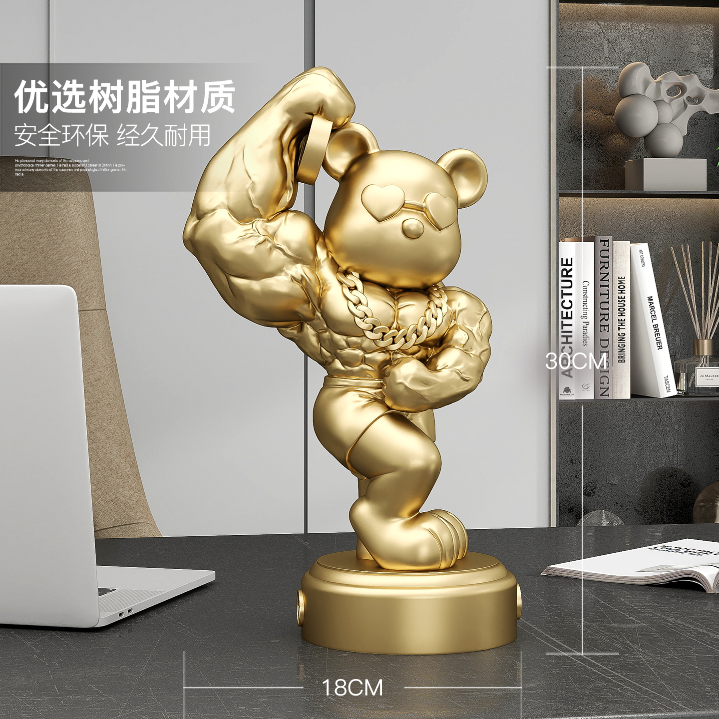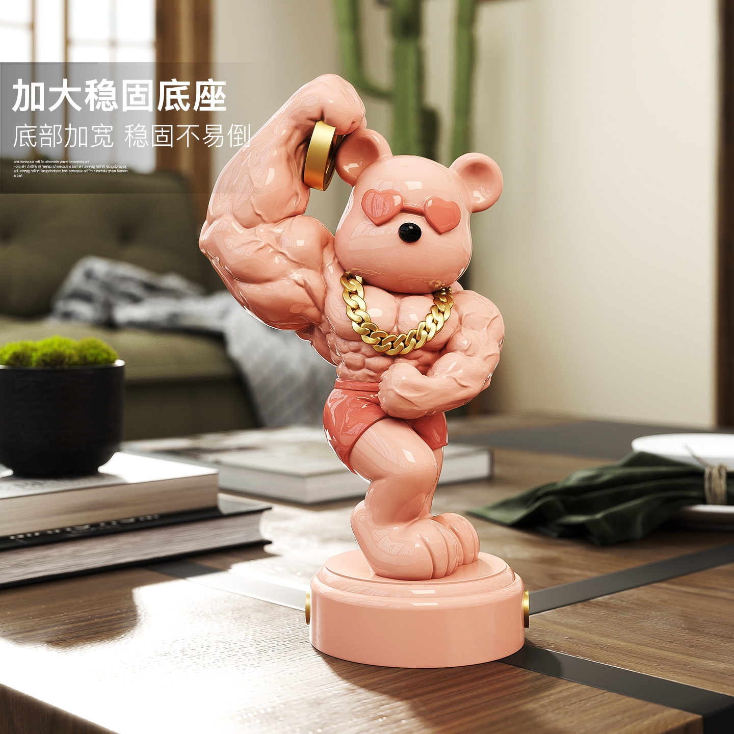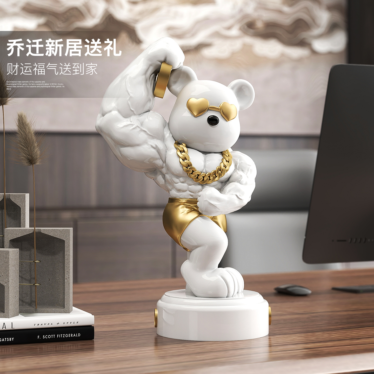 麒麟臂暴力熊摆件健身房收银台前台工艺品装饰店铺乔迁开业礼物