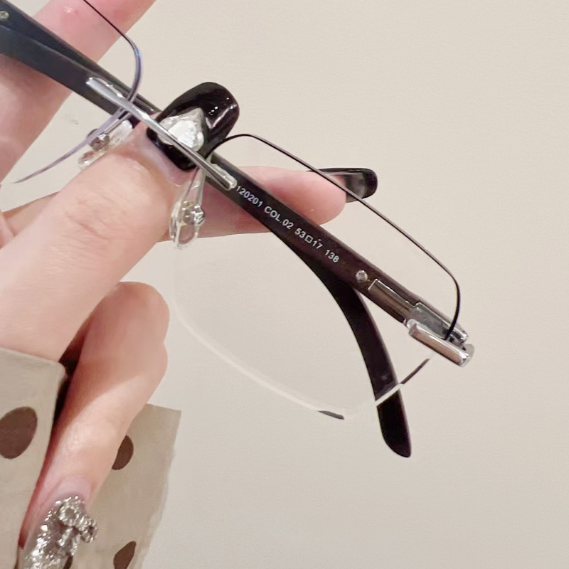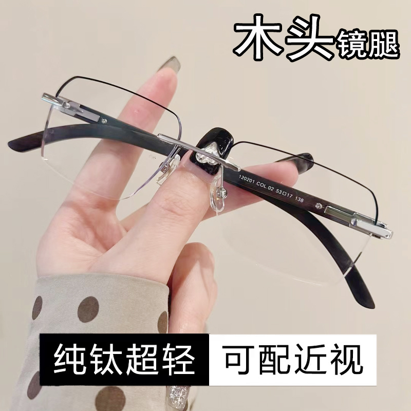 配近视潮流檀木镜腿男士大脸无框近视眼镜纯钛可配有度数防蓝光