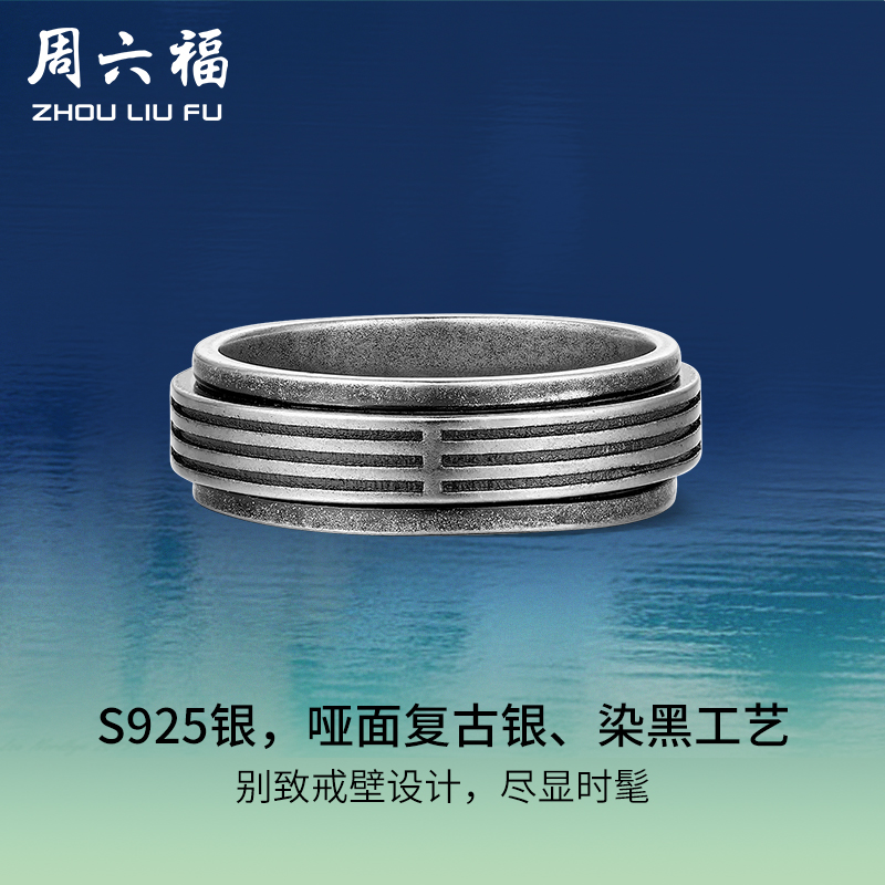 周六福珠宝银饰FANCY指环男复古银戒指高级嘻哈潮手饰送男友礼物