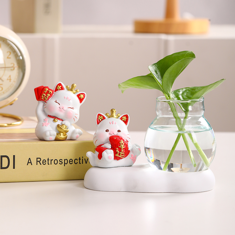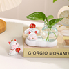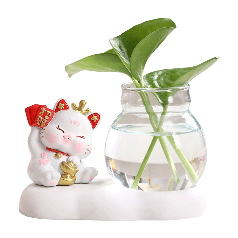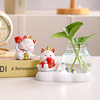 可爱招财猫绿萝水培花瓶桌面摆件办公室客厅创意插花小摆设装饰品