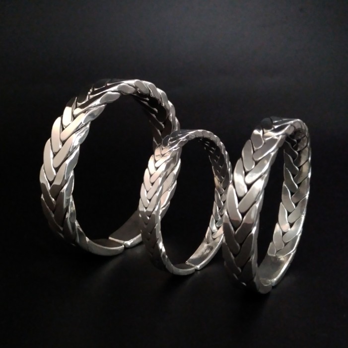 云南手工银999足银私人定制编织手镯男女情侣复古麻花镯子纯银