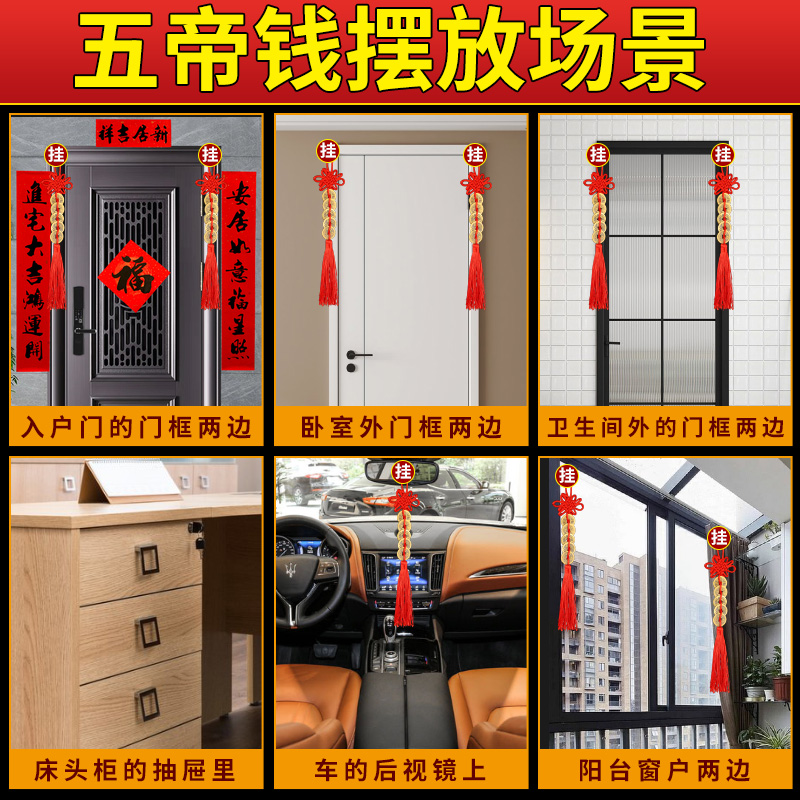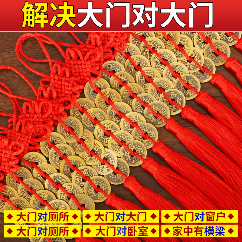 五帝钱门对门纯铜吉祥结真品五吊钱古币铜钱串窗户大门中国结挂件