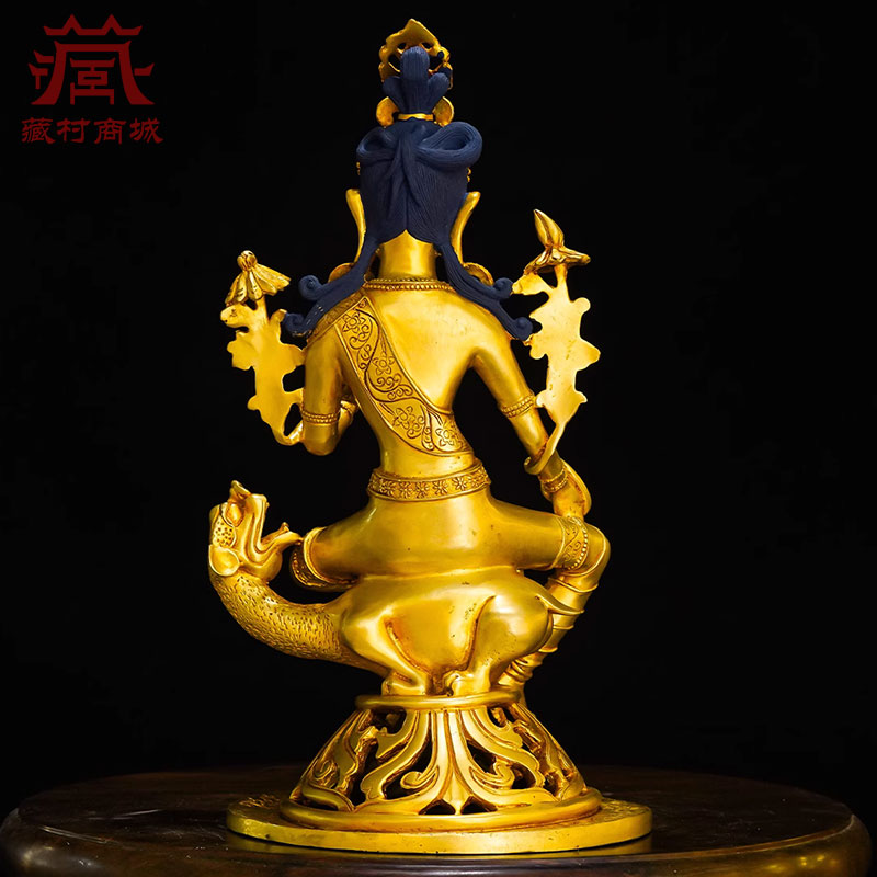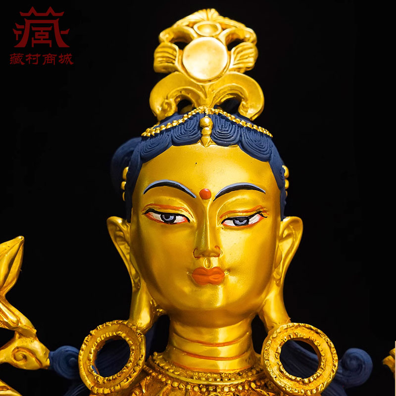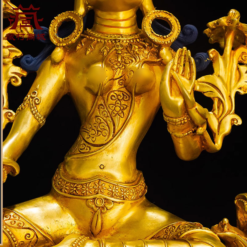 精工铜《绿度母》室内家用全鎏金《绿多罗》桌面铜像摆件