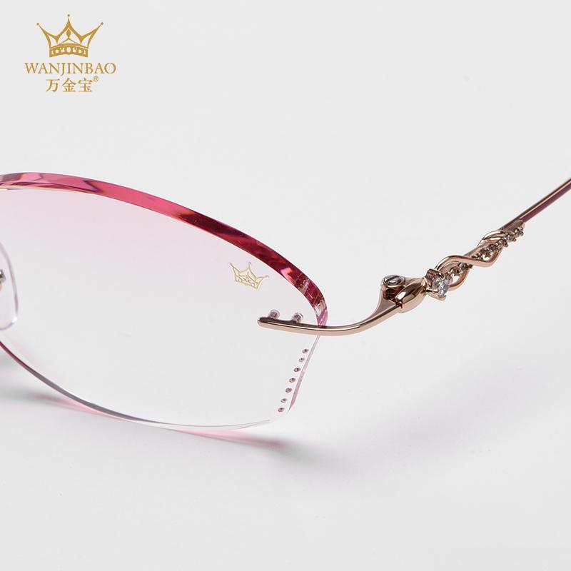 万金宝无框钻石切边近视眼镜女镶钻定制度数超轻奢华多边镜架5062