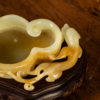 (已售出)清代玉雕双螭如意纹笔洗(红木座)古玩和田玉水洗234g