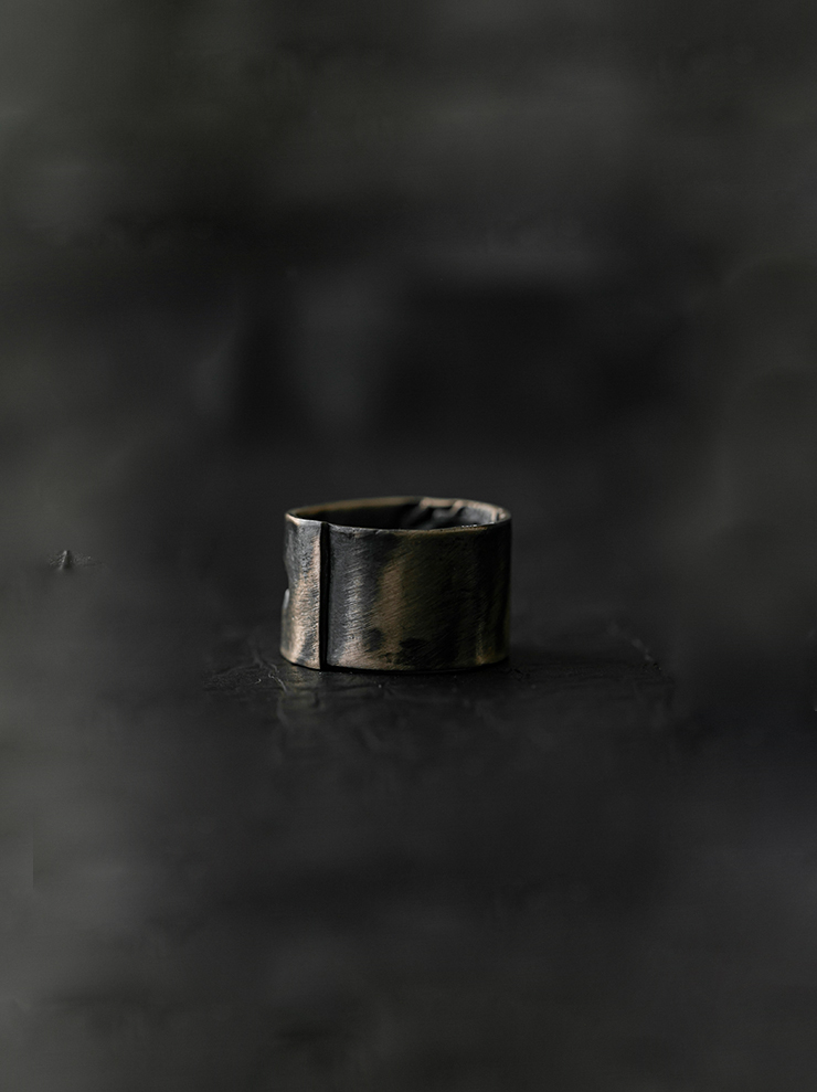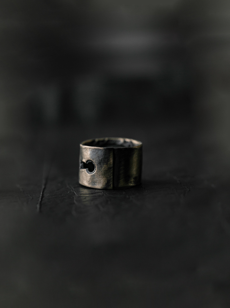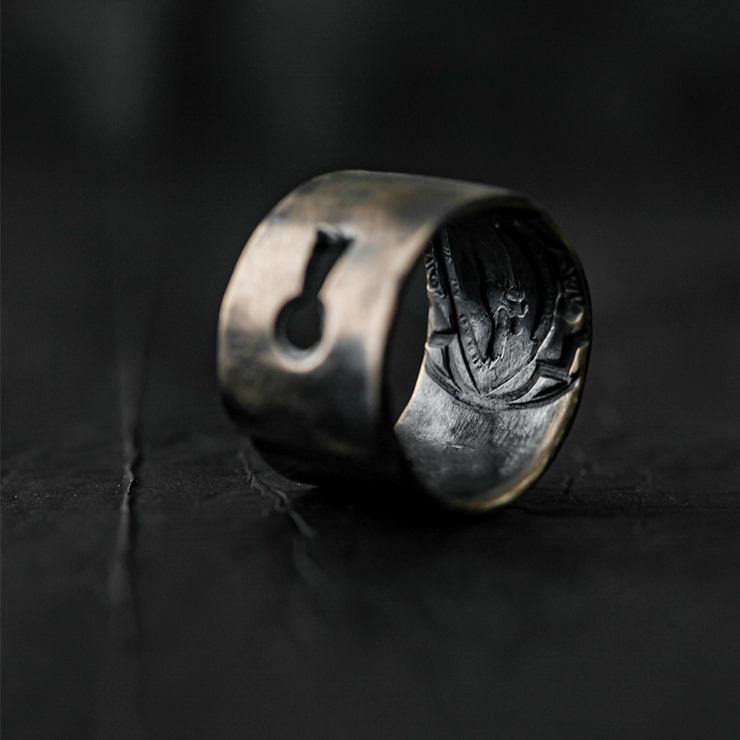暗黑Detaj风枪色戒指纯银925冷淡手工做旧古着中古小众设计高级感