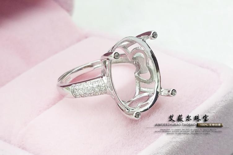 925纯银戒指空托 精工戒托 代加工宝石镶嵌戒托 12*16mm活口