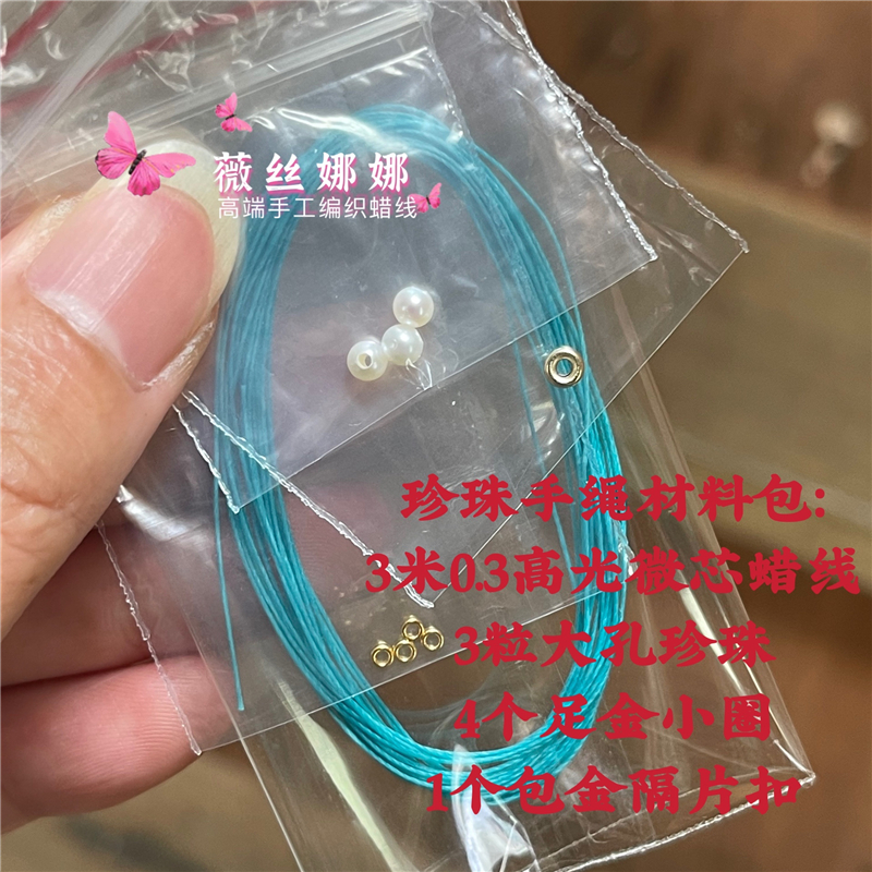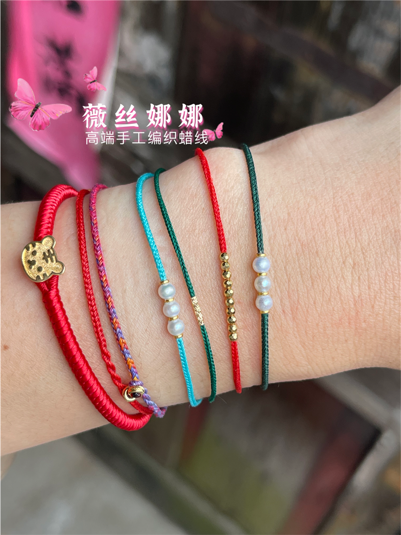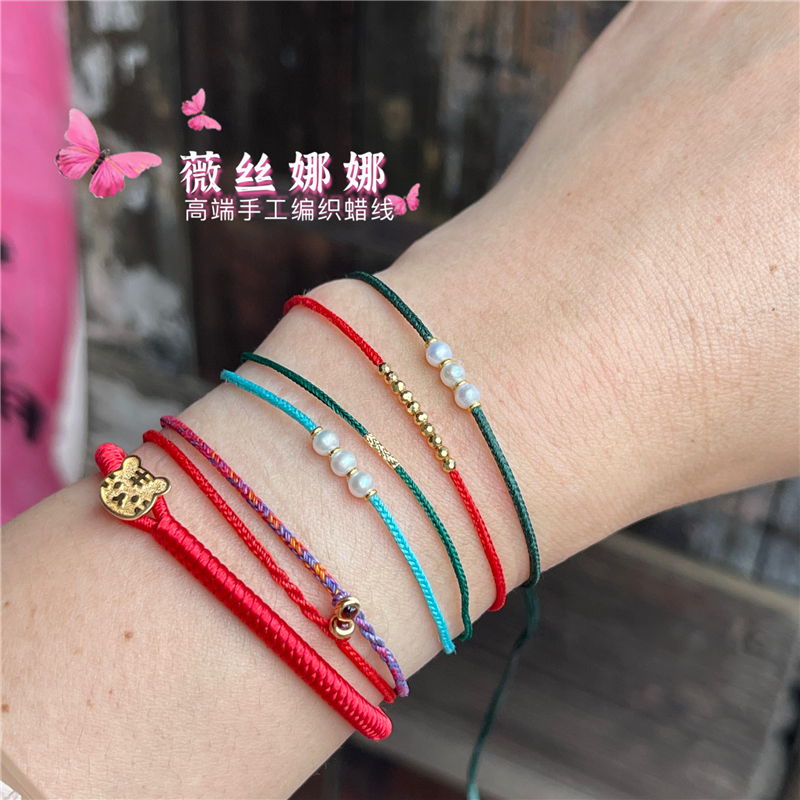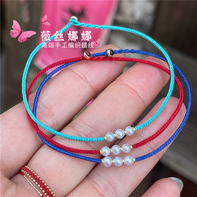 薇丝娜娜足金迷你小珍珠红绳手链高光微芯蜡线手工编织脚链材料包