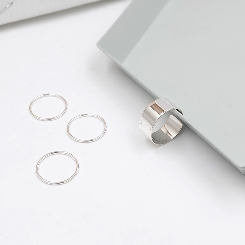 S925纯银戒指女生日韩潮人简约光面泰银宽面开口戒关节戒食指指环