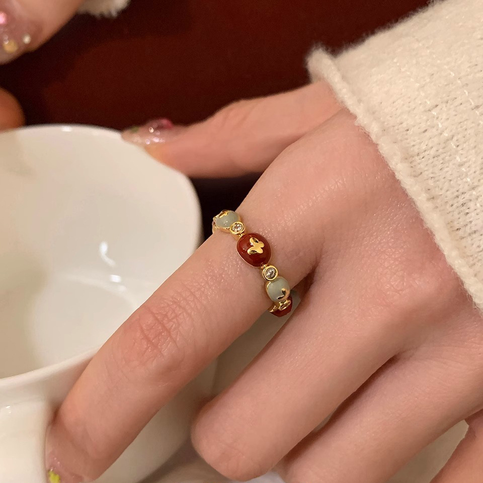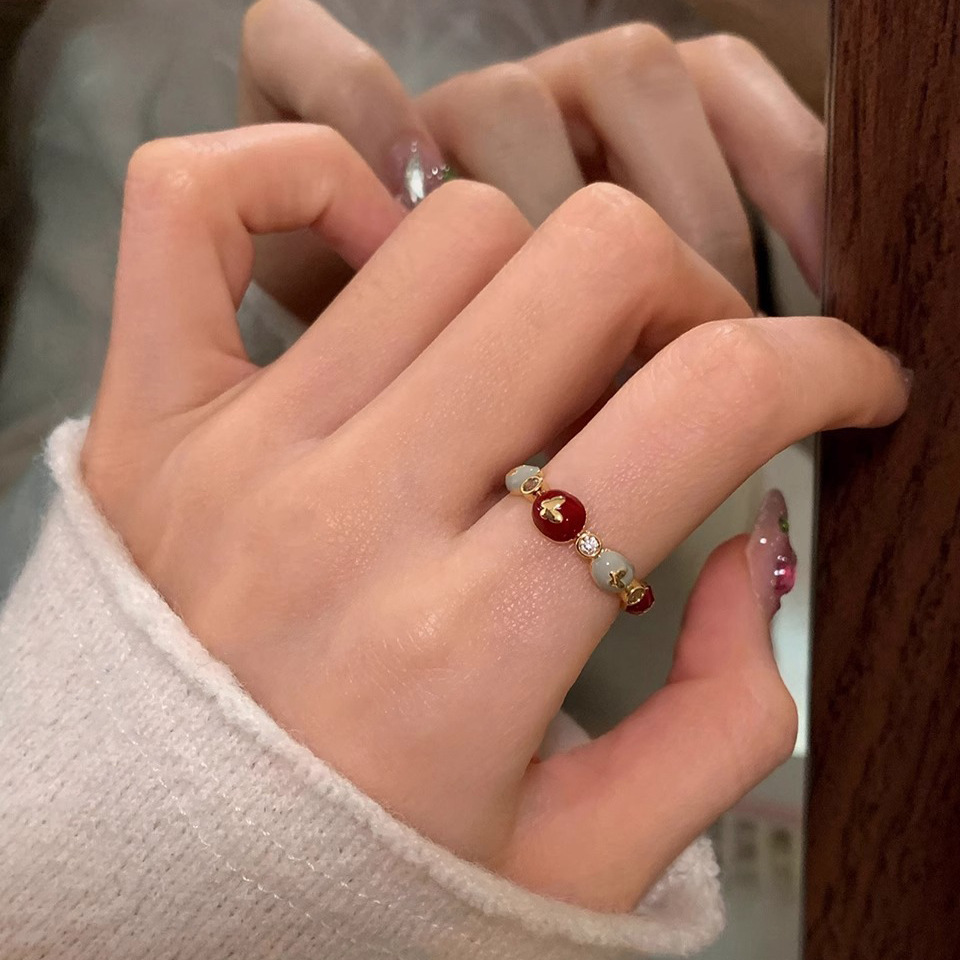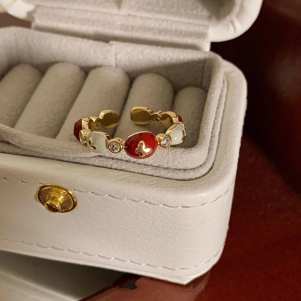 韩国进口红色滴釉蝴蝶结戒指女轻奢小众高级食指戒可调节复古温柔