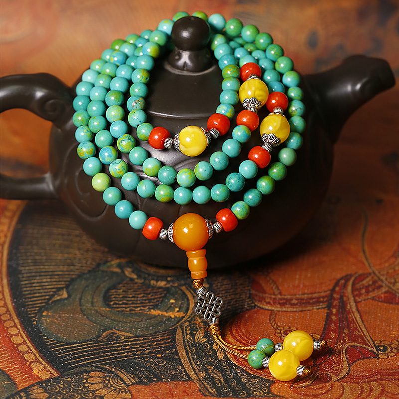 绿松石手串手链108颗藏式佛珠项链长天眼车挂件文玩配饰毛衣链女