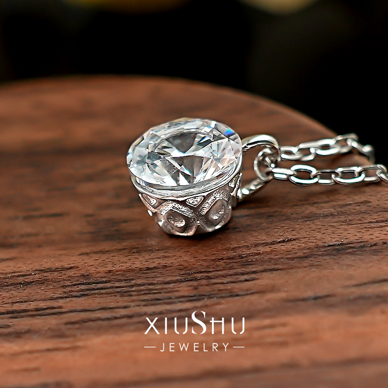《下午茶》简约小茶杯925银仿真钻项链镶嵌高碳钻吊坠八星八箭